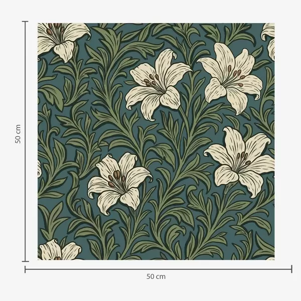 Tapeta Кремасти љиљани међу густим зеленилом на тиркизној позадини бр. a00645