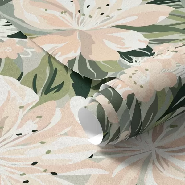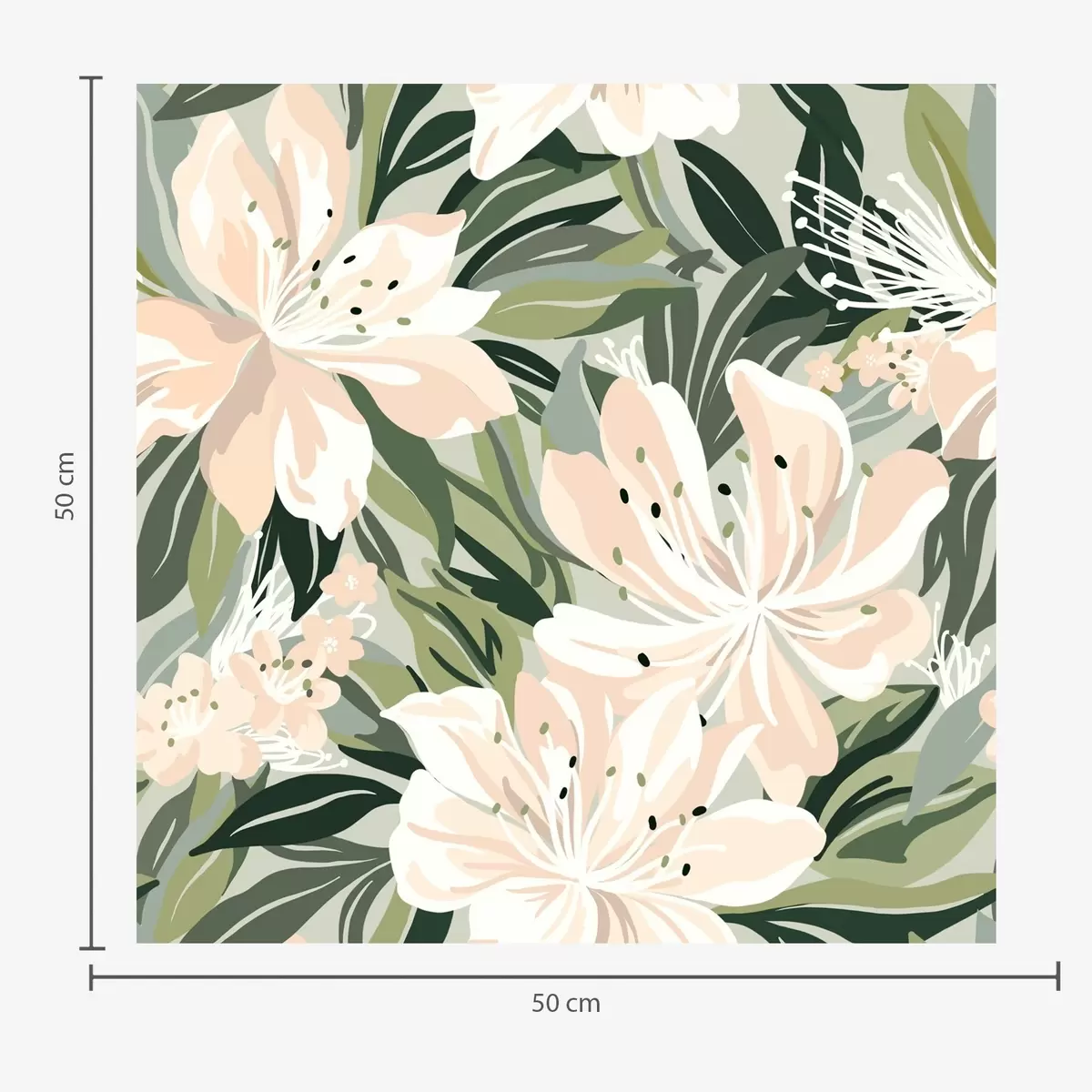 Tapeta Велики кремасти цветови на светлозеленој позадини бр. a00646