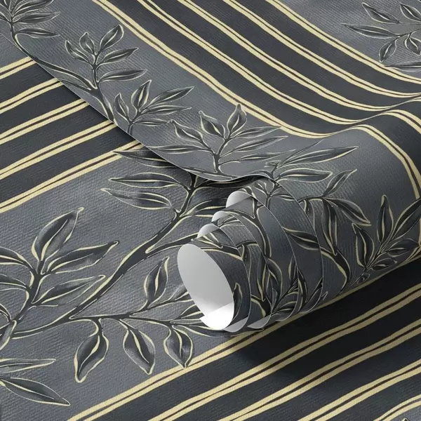 Tapeta Вертикалне пруге са ботаничким узорцима у тамним тоновима бр. a00648