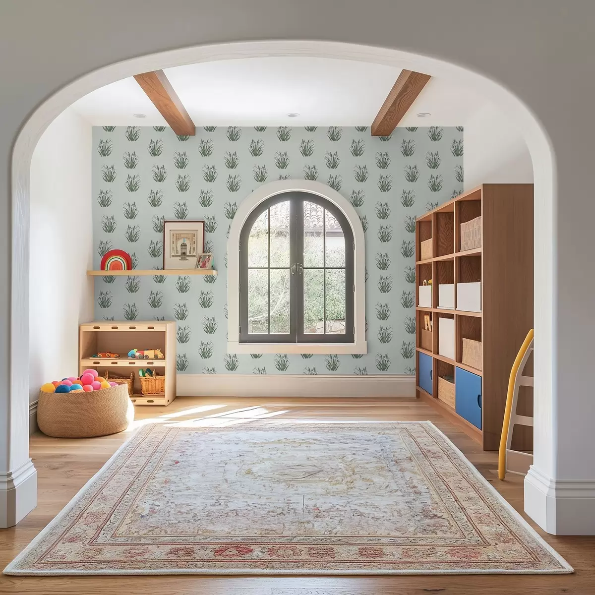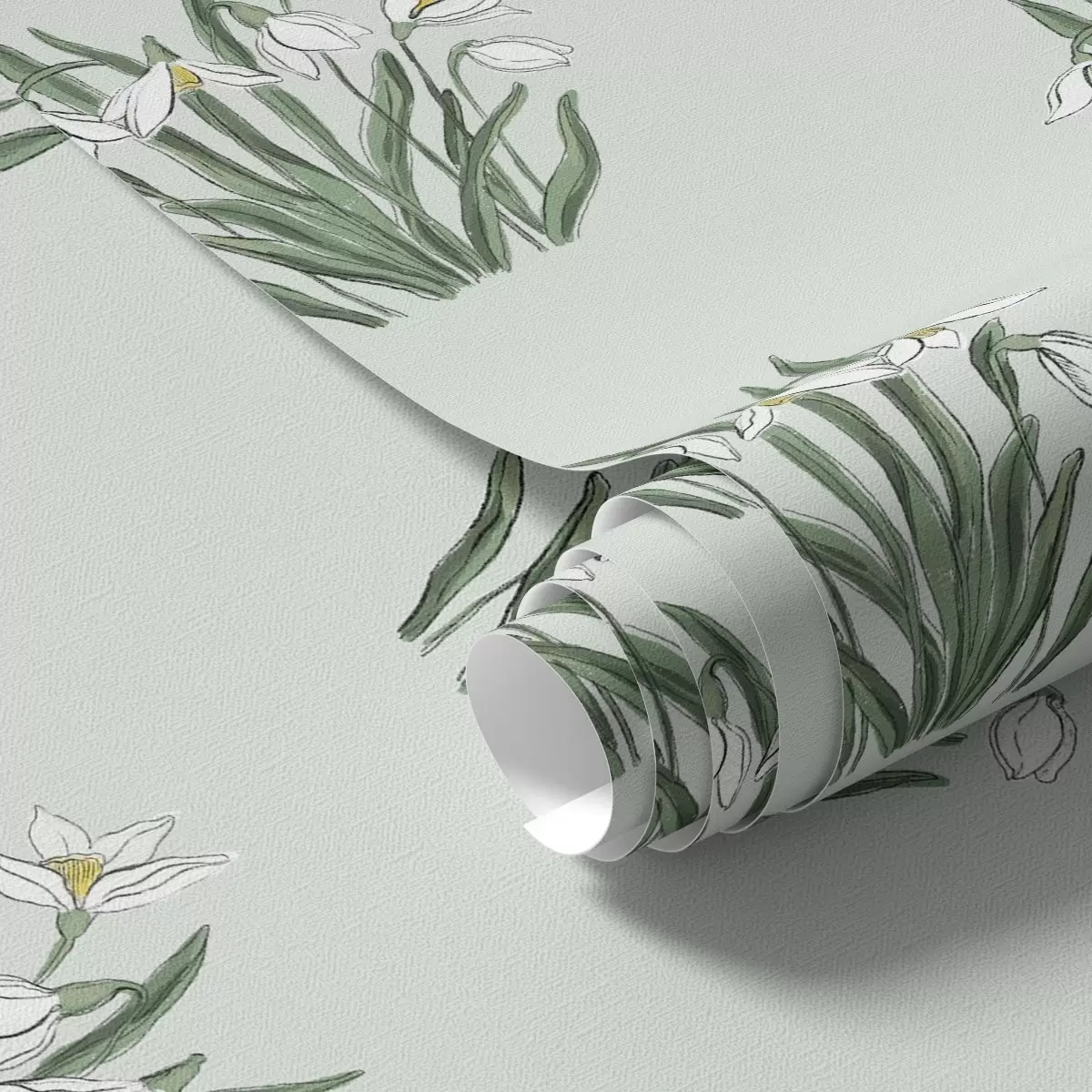 Tapeta Висибабе са зеленим листовима на пастелно зеленој позадини бр. a00651