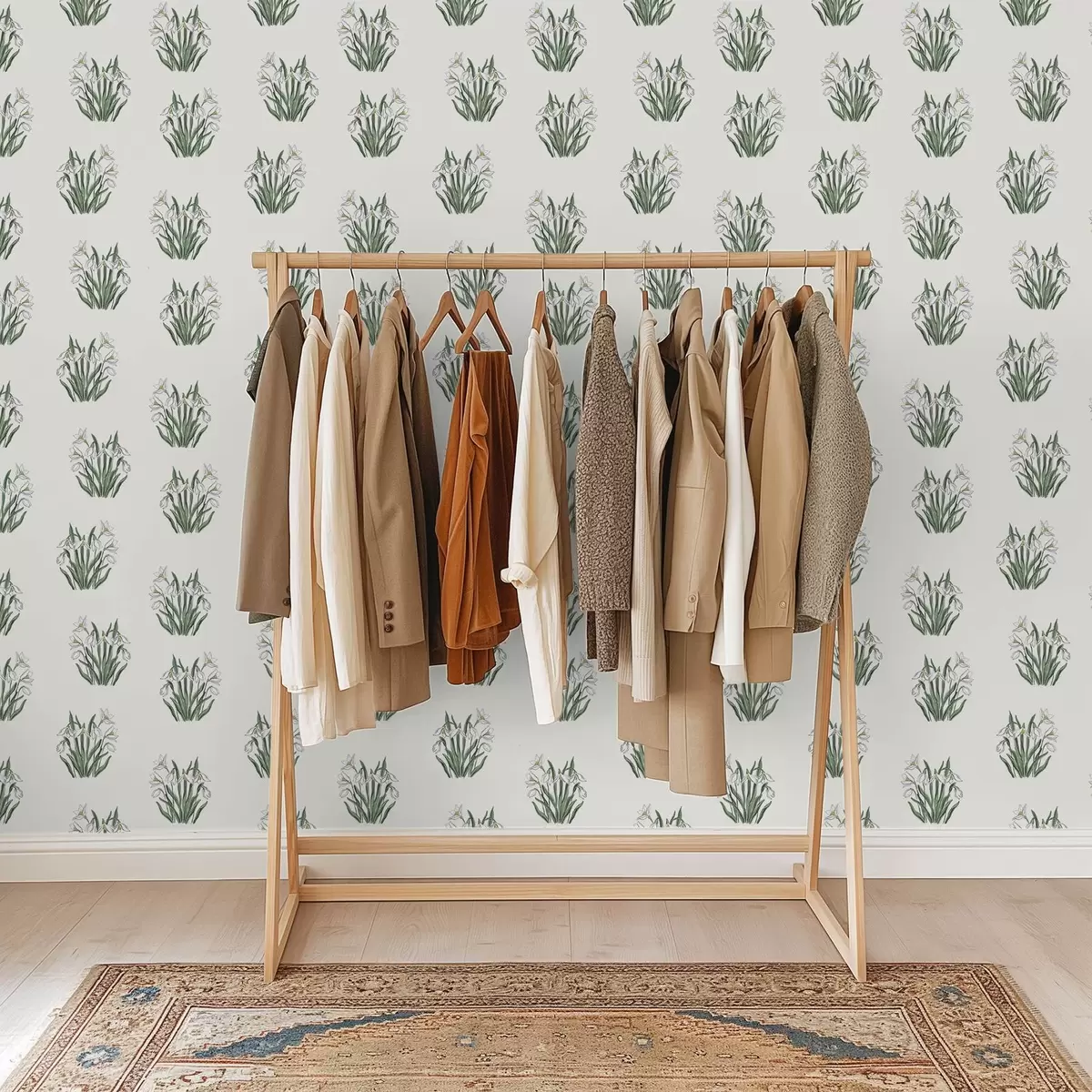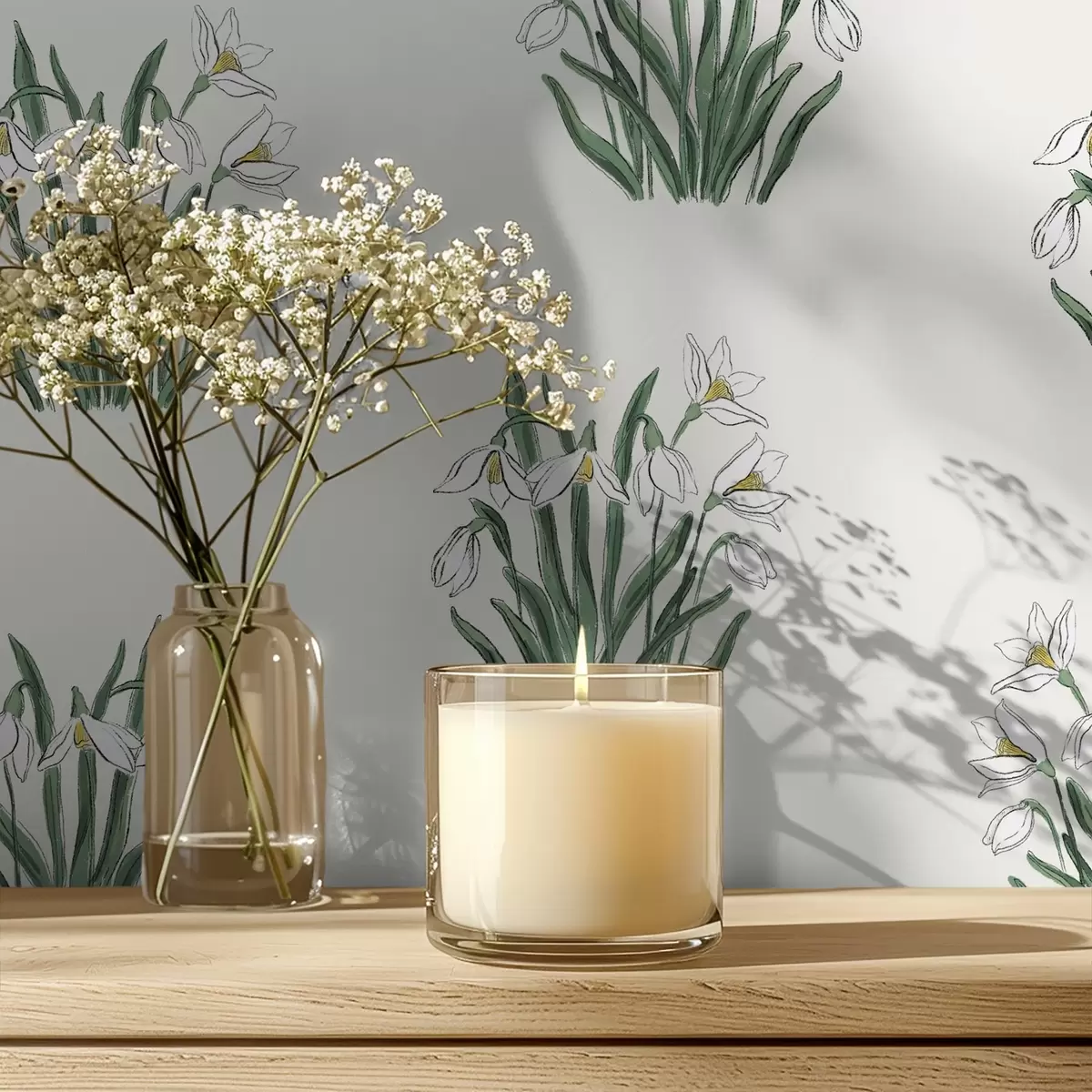 Tapeta Висибабе са зеленим листовима на светло сивој позадини бр. a00651v1