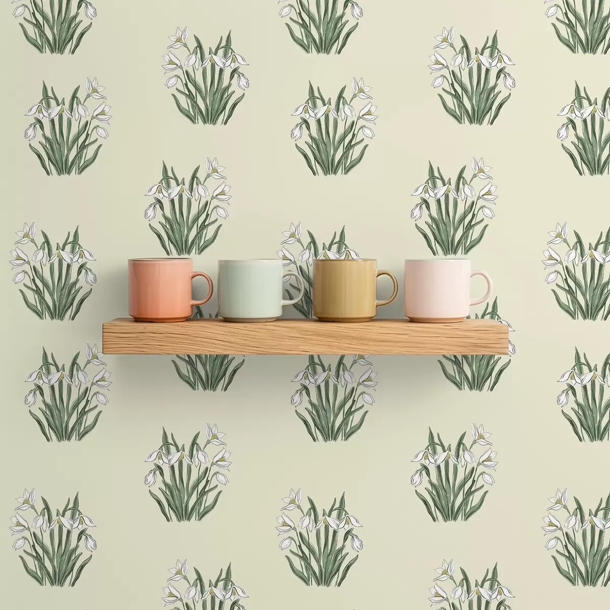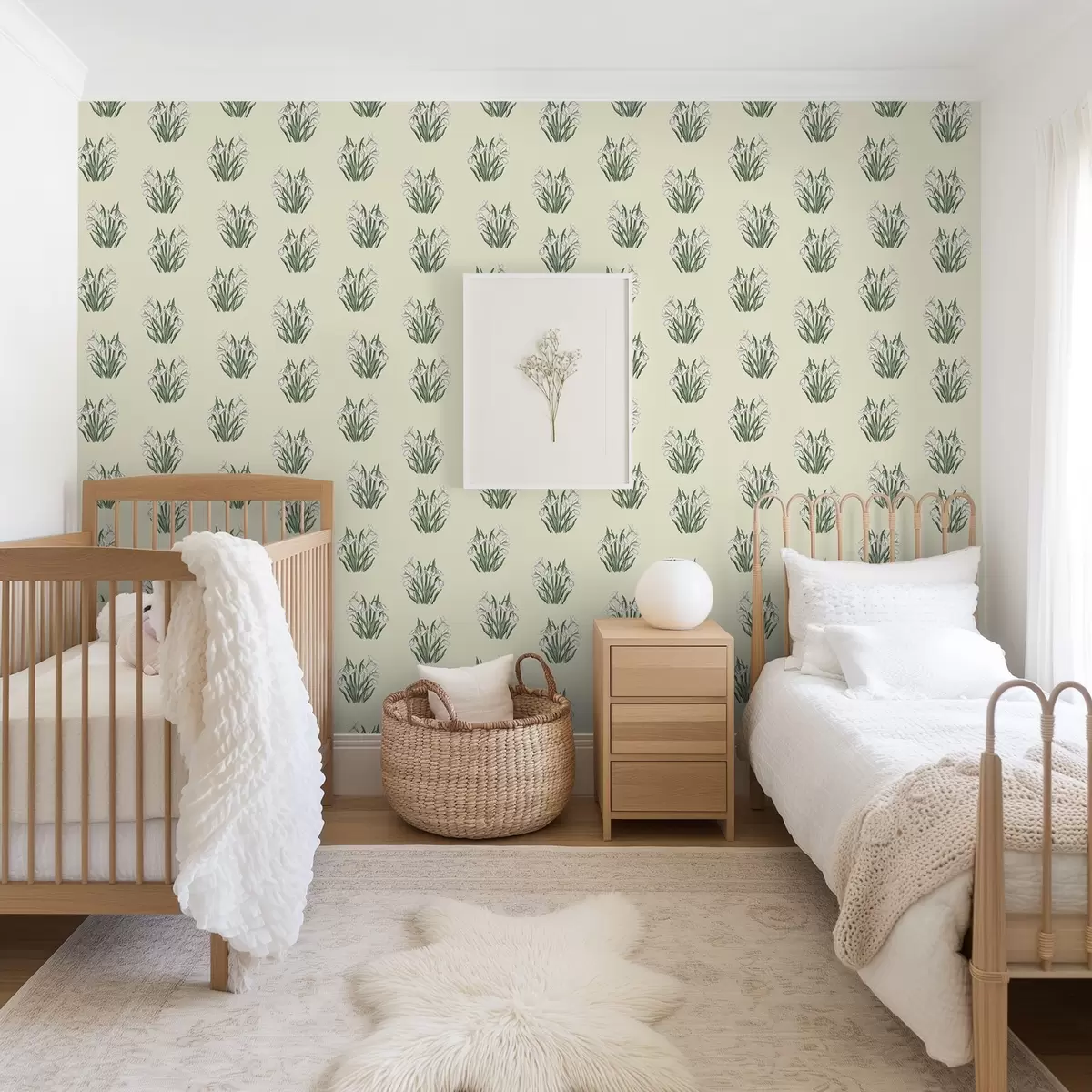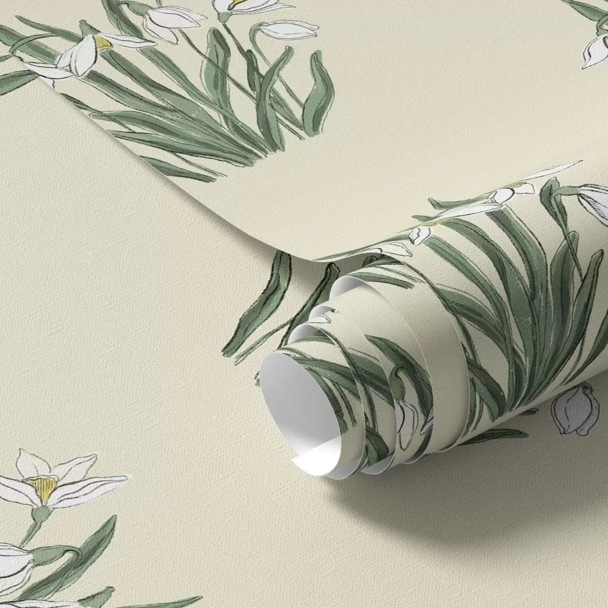 Tapeta Висибабе са зеленим листовима на кремастој позадини бр. a00651v2