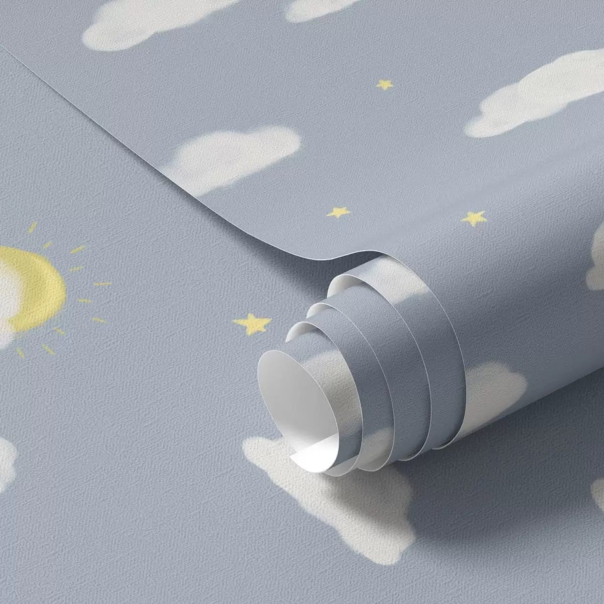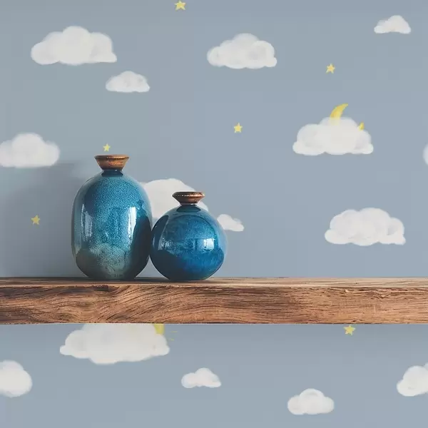 Tapeta Меки облаци, звезде и сунце на плавој позадини бр. a00652