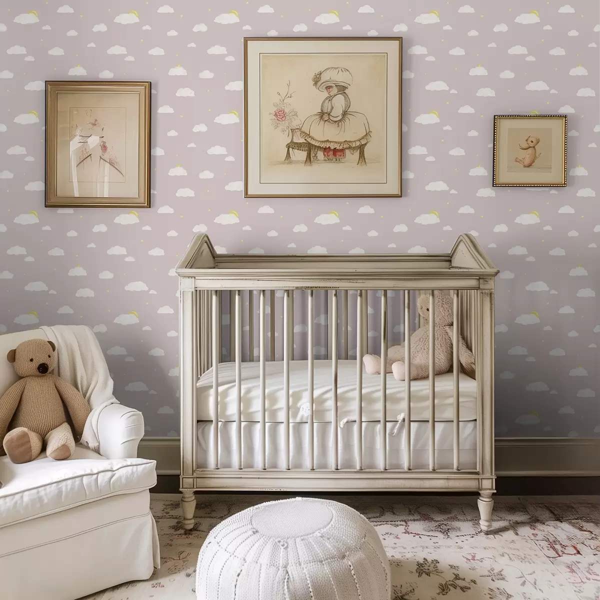 Tapeta Меки облаци, звезде и сунце на ружичасто сивој позадини бр. a00652v2