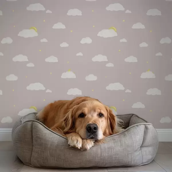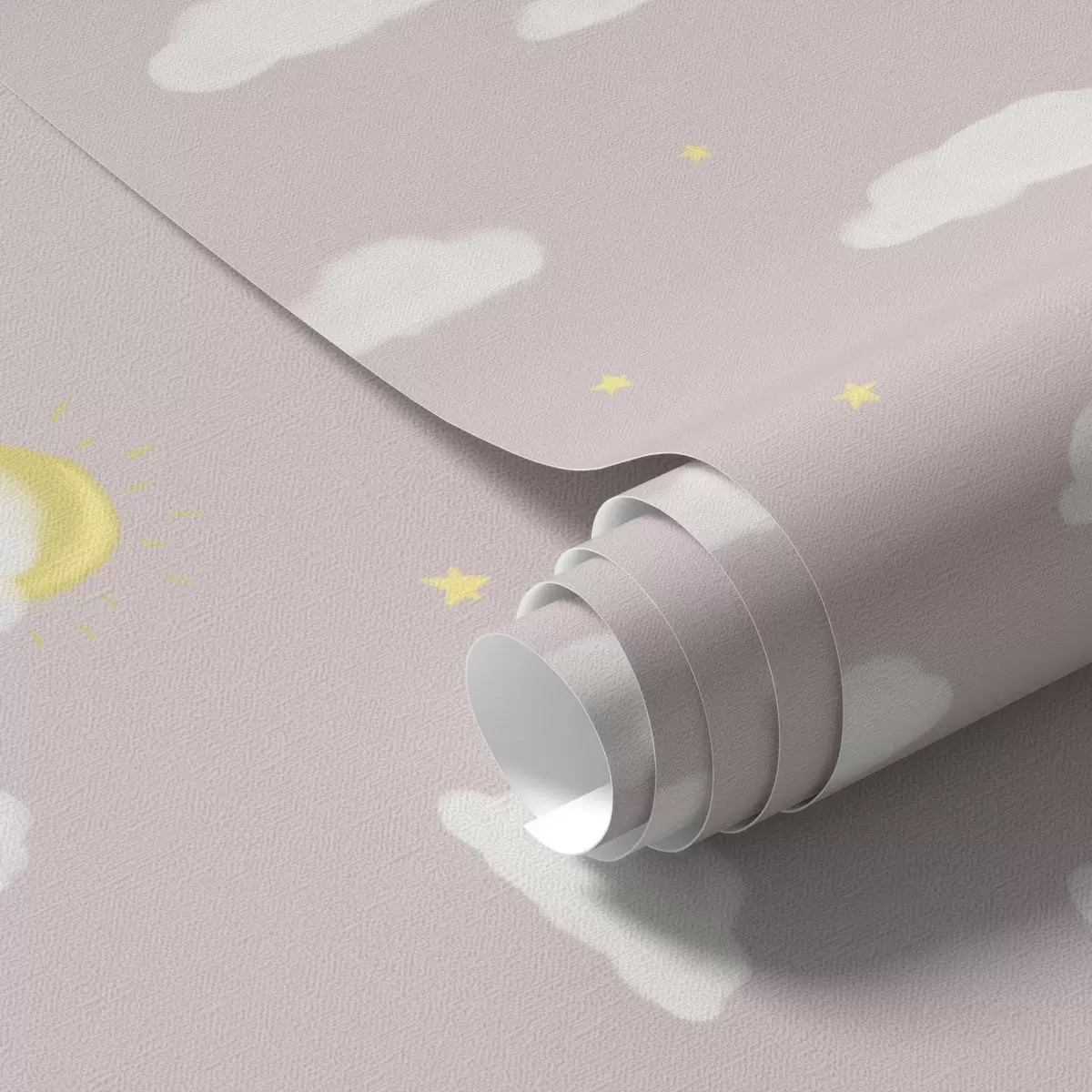 Tapeta Меки облаци, звезде и сунце на ружичасто сивој позадини бр. a00652v2