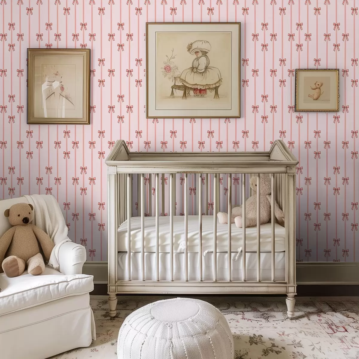 Tapeta Вертикалне траке са машнама, прашкасто ружичаста позадина бр. a00653v2