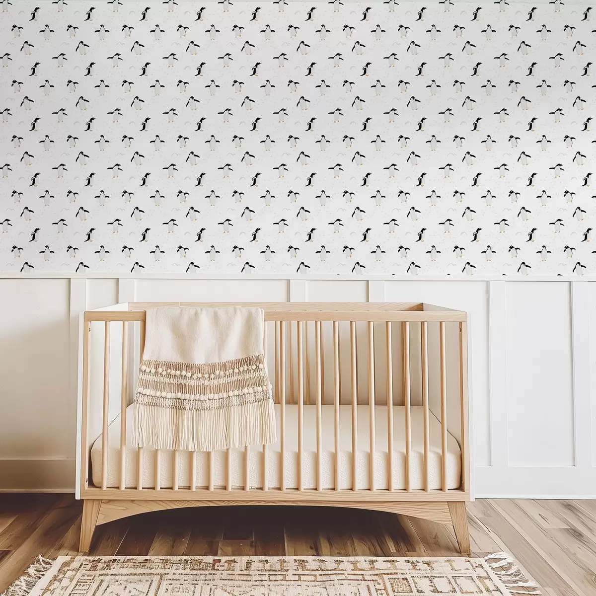 Tapeta Пингвини на белом са отисцима стопала бр. a00655v1