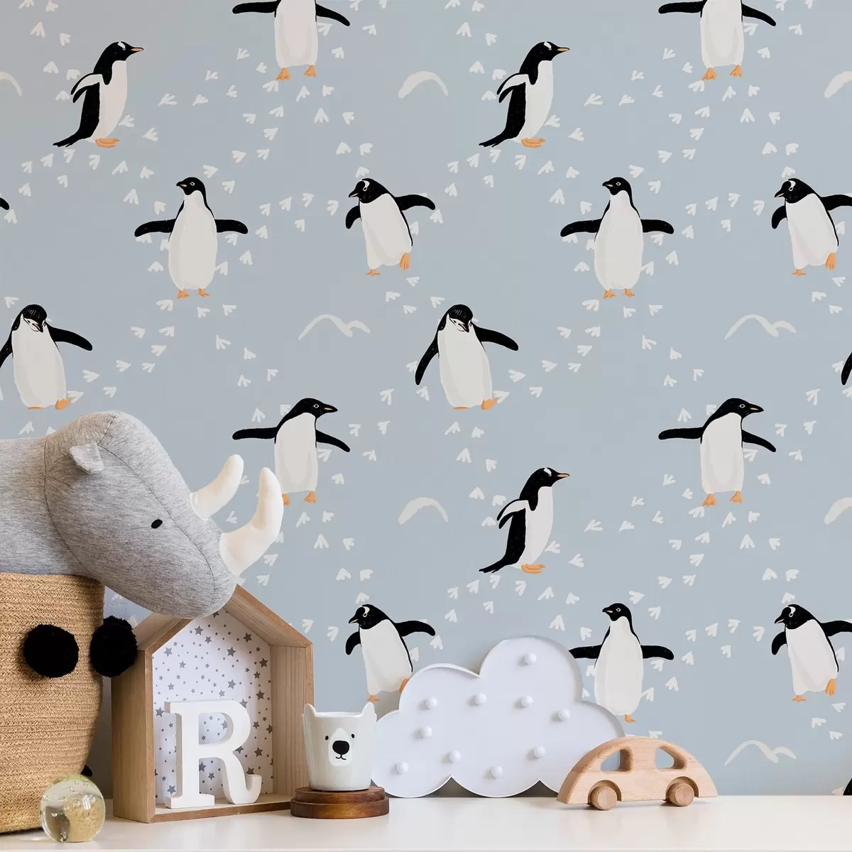 Tapeta Пингвини на светлоплавој боји, ритам отисака стопала бр. a00655v2