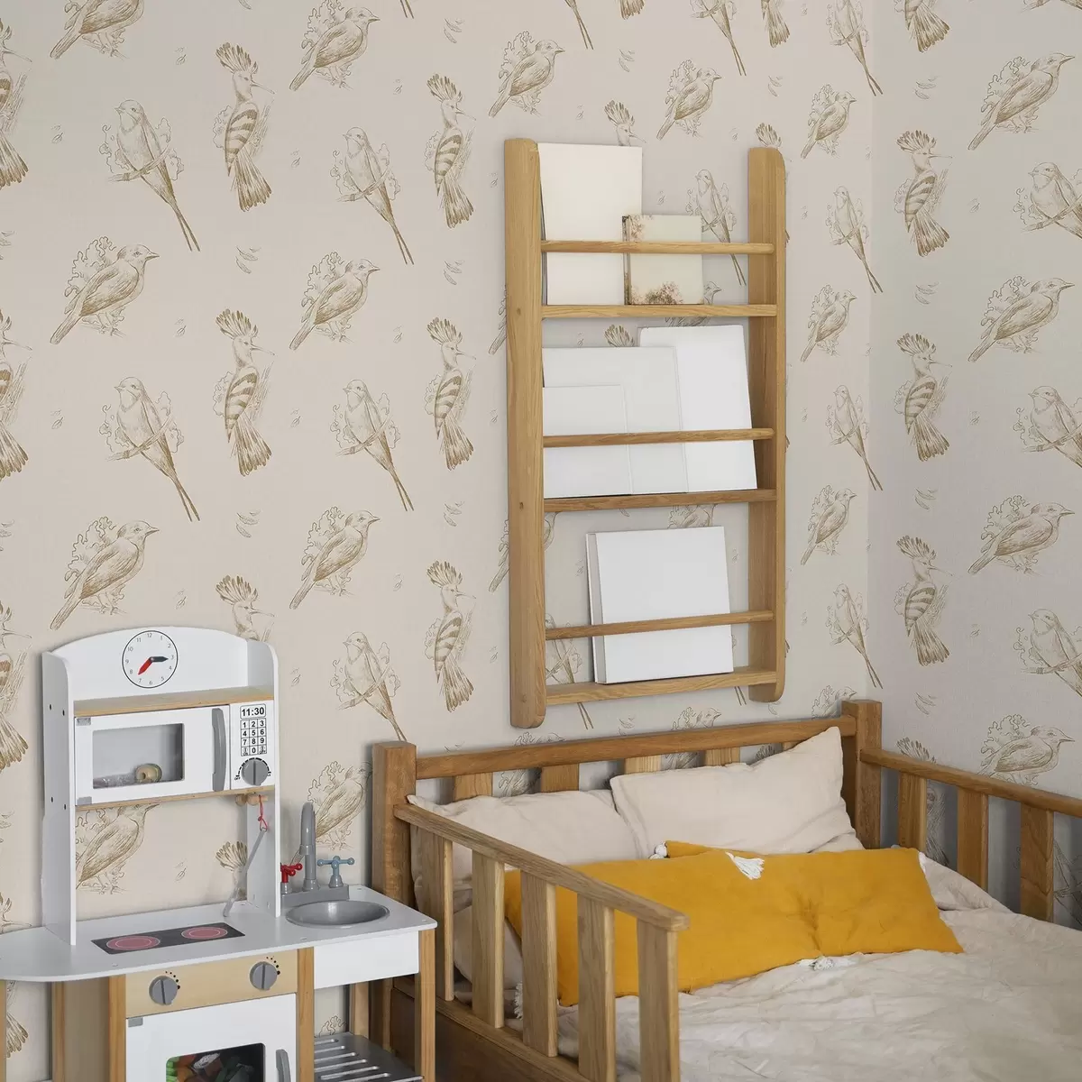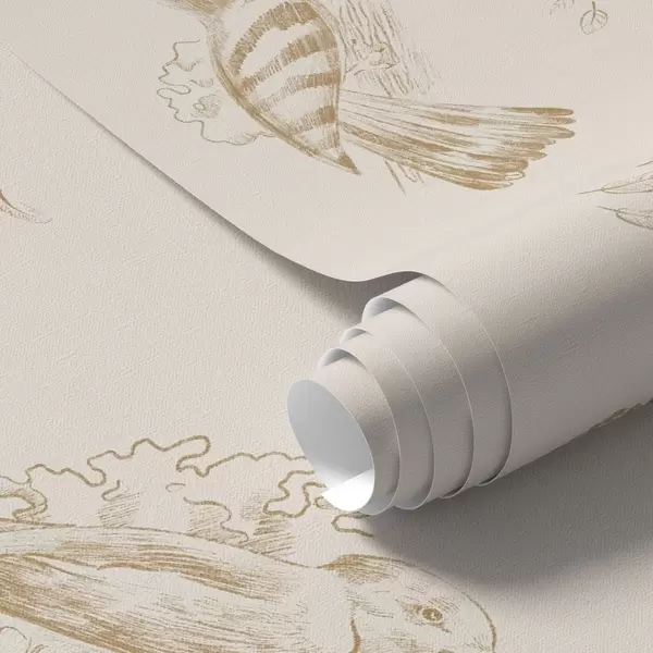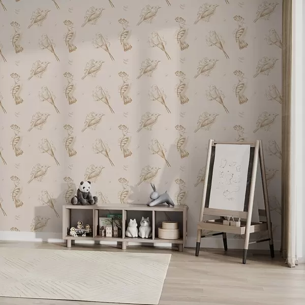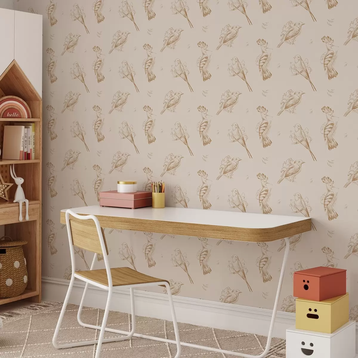 Tapeta Птичји тоалет: скицирајте птице на топлој беж боји бр. a00656v3