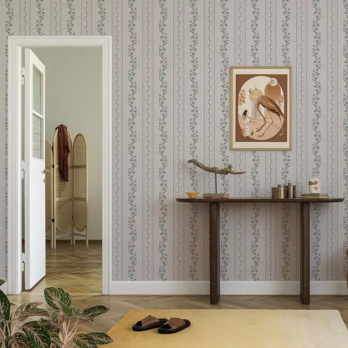Tapeta Нежне пруге са цветовима лаванде, винтаге бр. a00671
