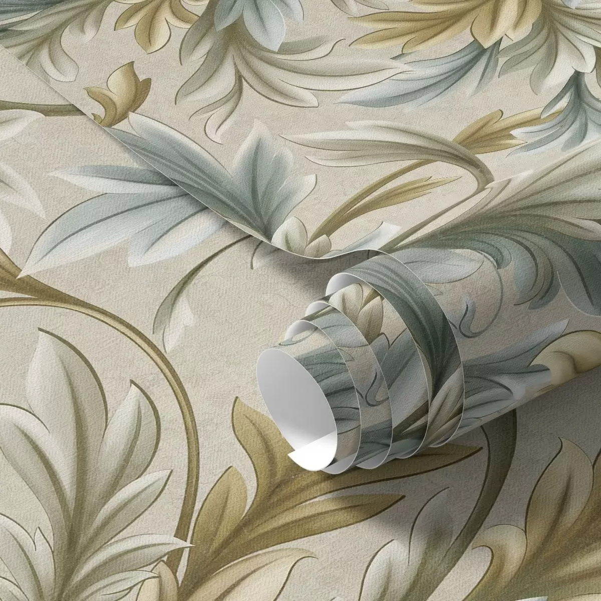 Tapeta Волуменозни листови у пастелним нијансама зелене и беж боје бр. a00674