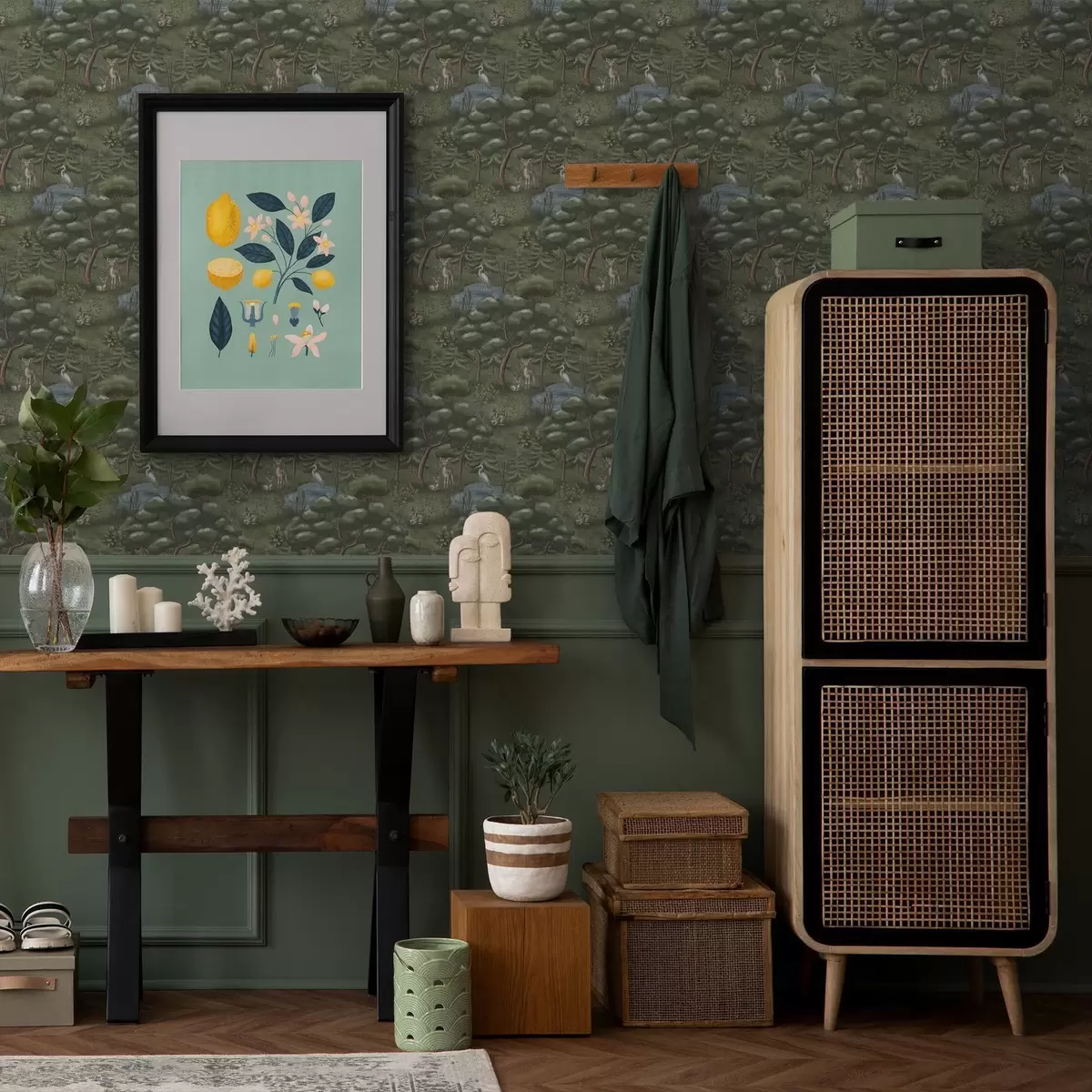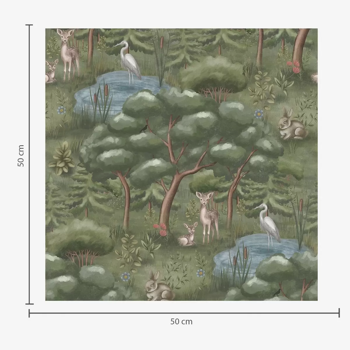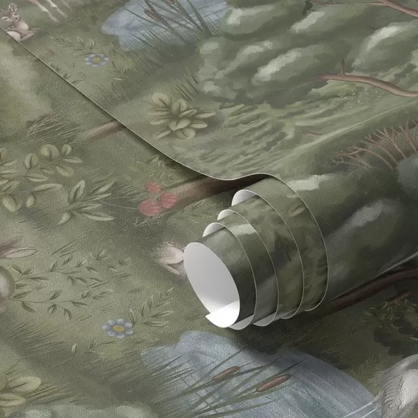 Tapeta Шумска пропланак са ланади, зечевима и чапљама бр. a00680