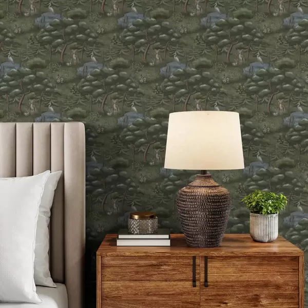 Tapeta Шумска пропланак са ланади, зечевима и чапљама бр. a00680