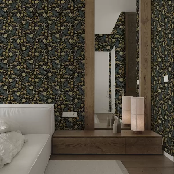 Tapeta Птице, гуштери и пужеви међу цвећем на тамној позадини бр. a00691