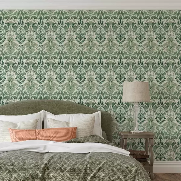 Tapeta Зелени дамаск са рељефном текстуром на светлој позадини бр. a00692