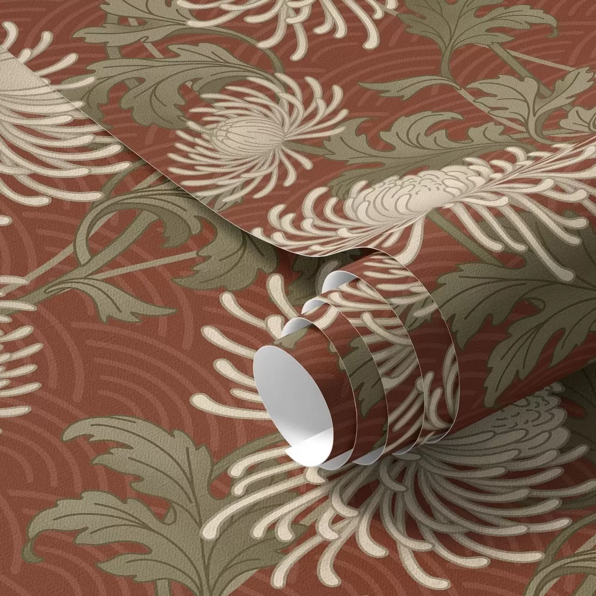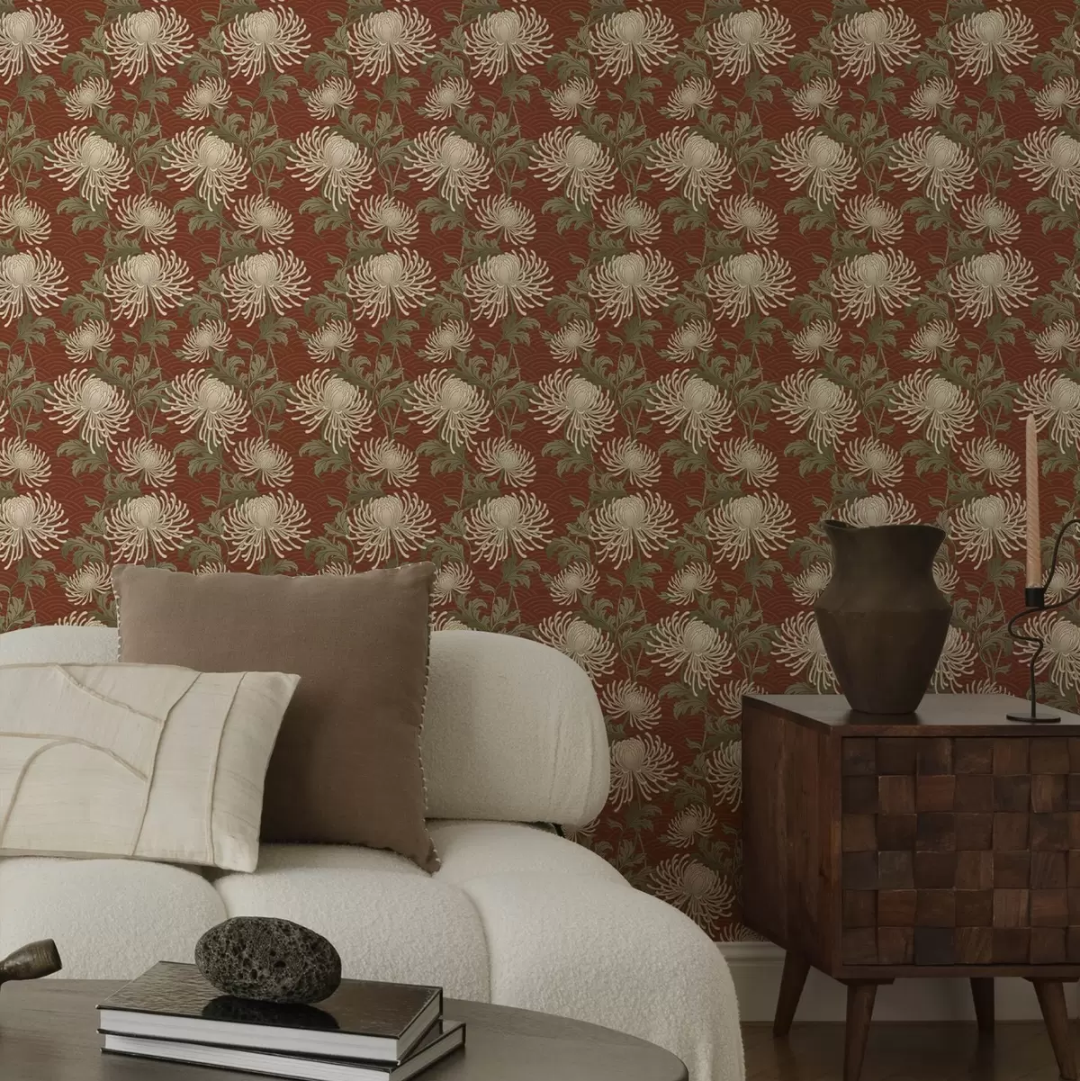 Tapeta Крем хризантеме на теракотној позадини, азијски стил бр. a00693