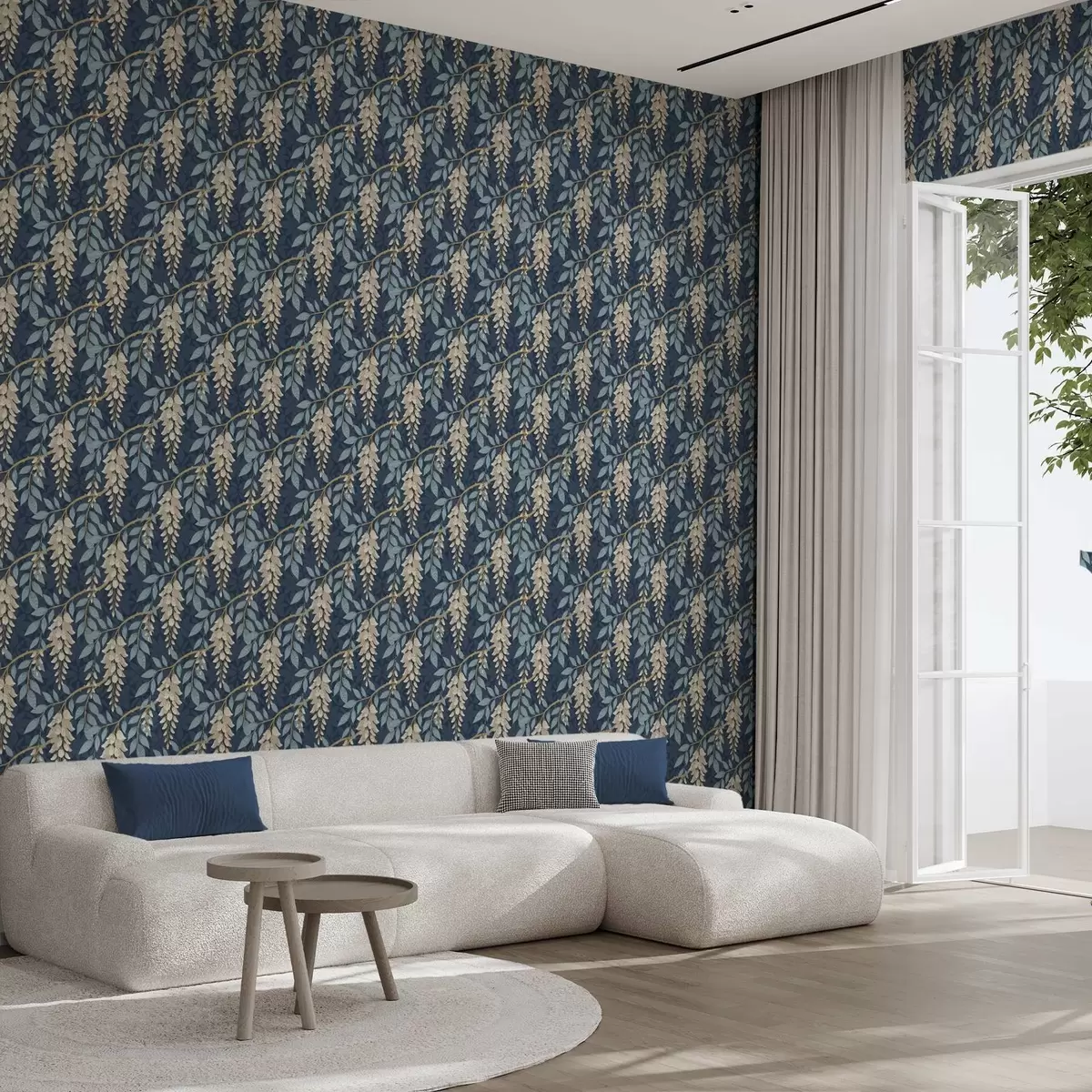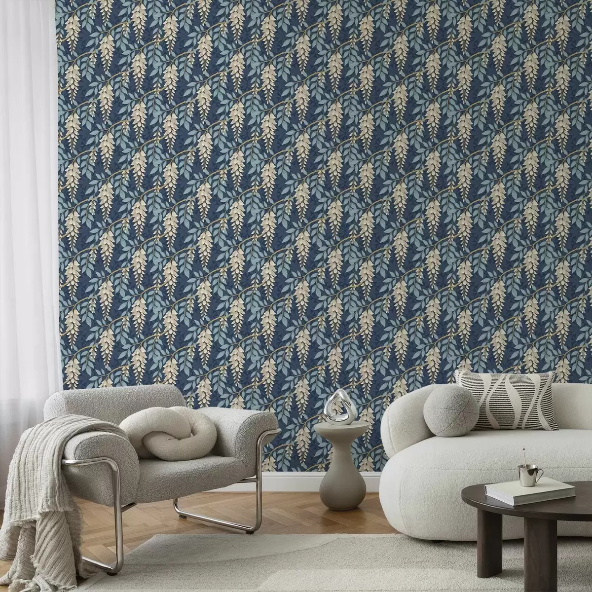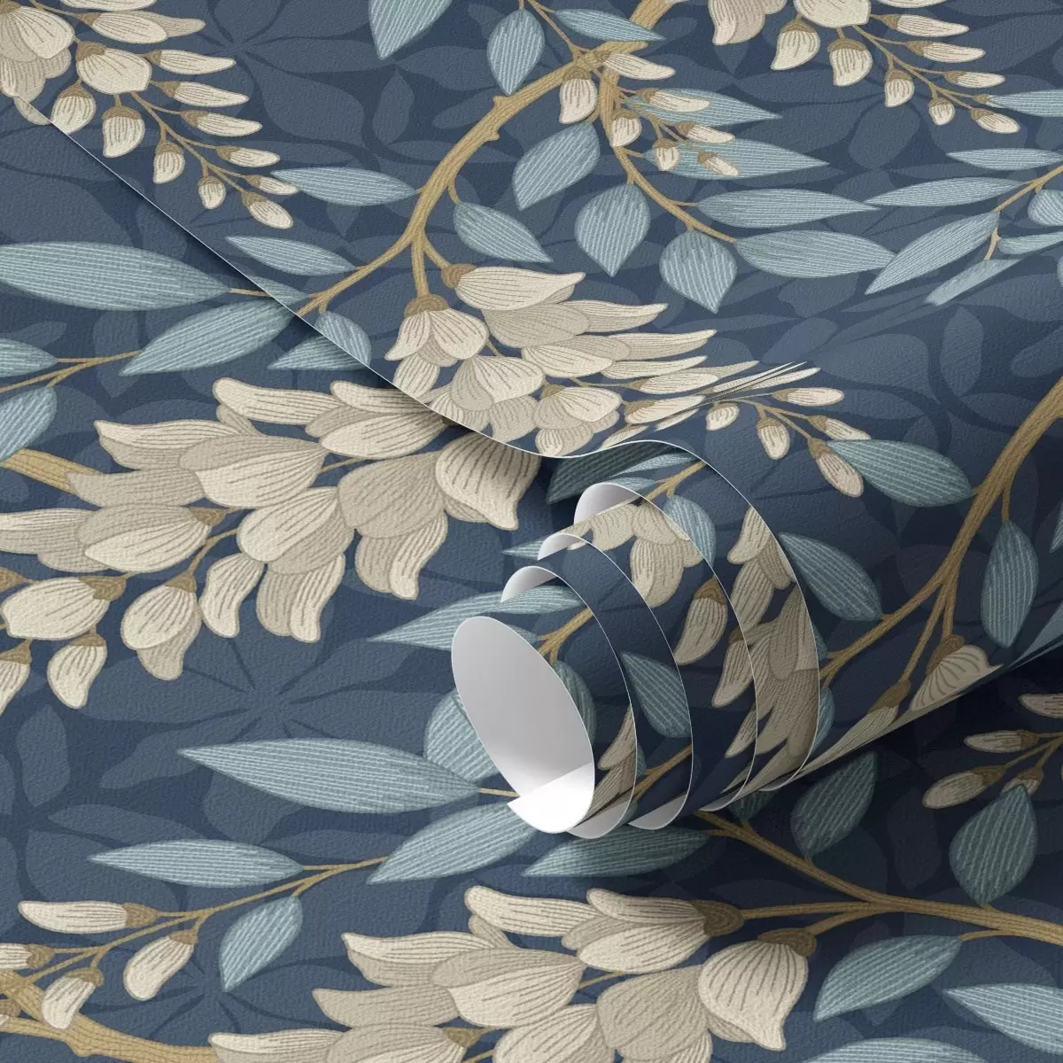 Tapeta Глицинија са плавим листовима на тамноплавој позадини бр. a00694v2