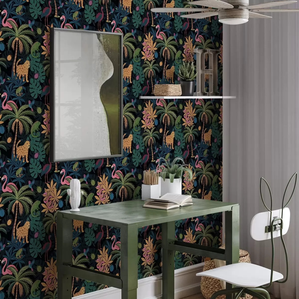 Tapeta Светле тропске животиње међу лишћем на тамној позадини бр. a00701