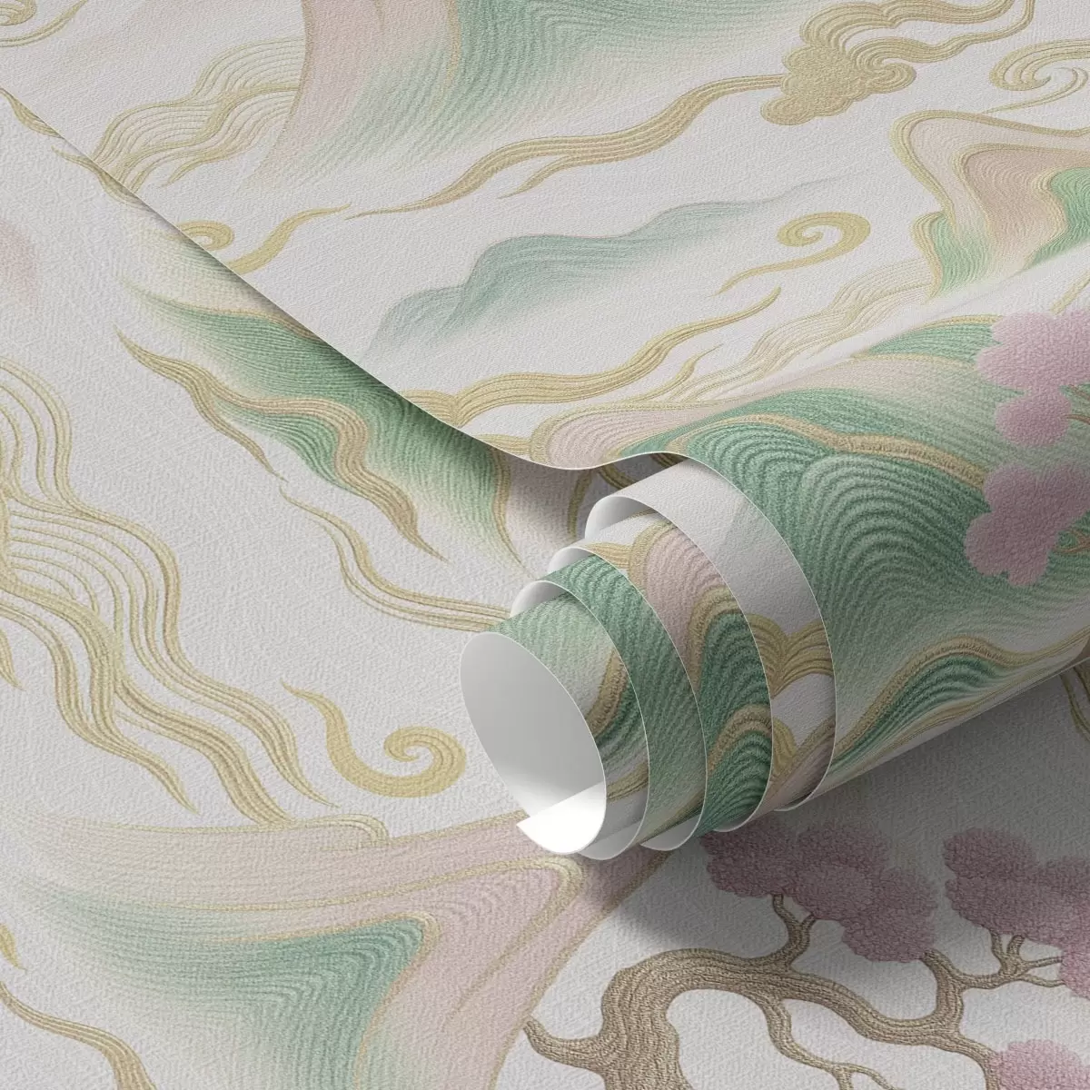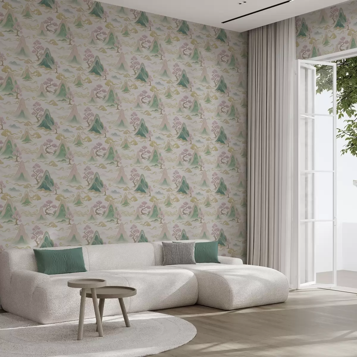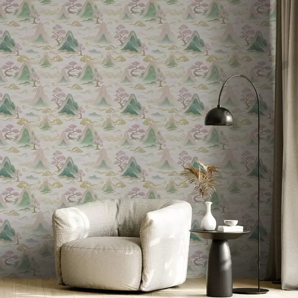 Tapeta Планине, облаци и борови у оријенталном декоративном стилу бр. a00703