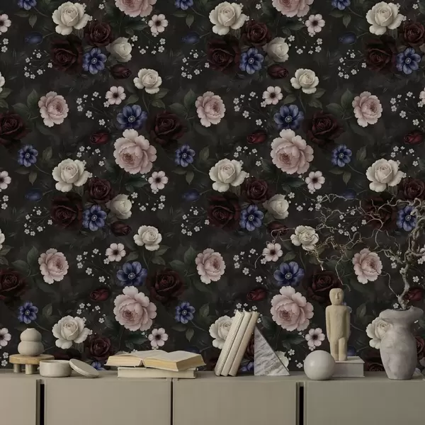 Tapeta Тамне руже, анемони и божури на тамној позадини бр. a00704