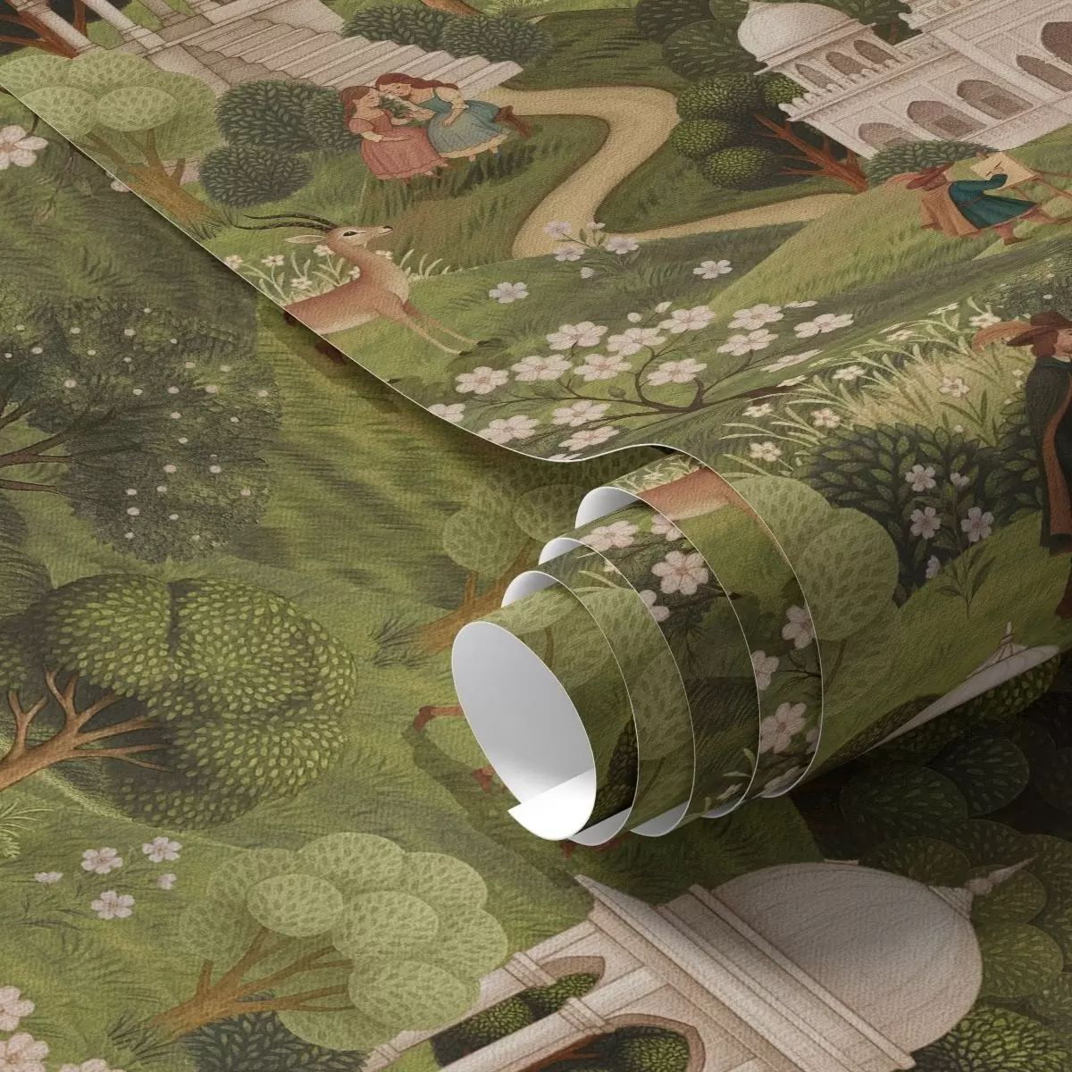 Tapeta Парковска сцена са дрвећем и архитектуром у пејзажном стилу бр. a00705