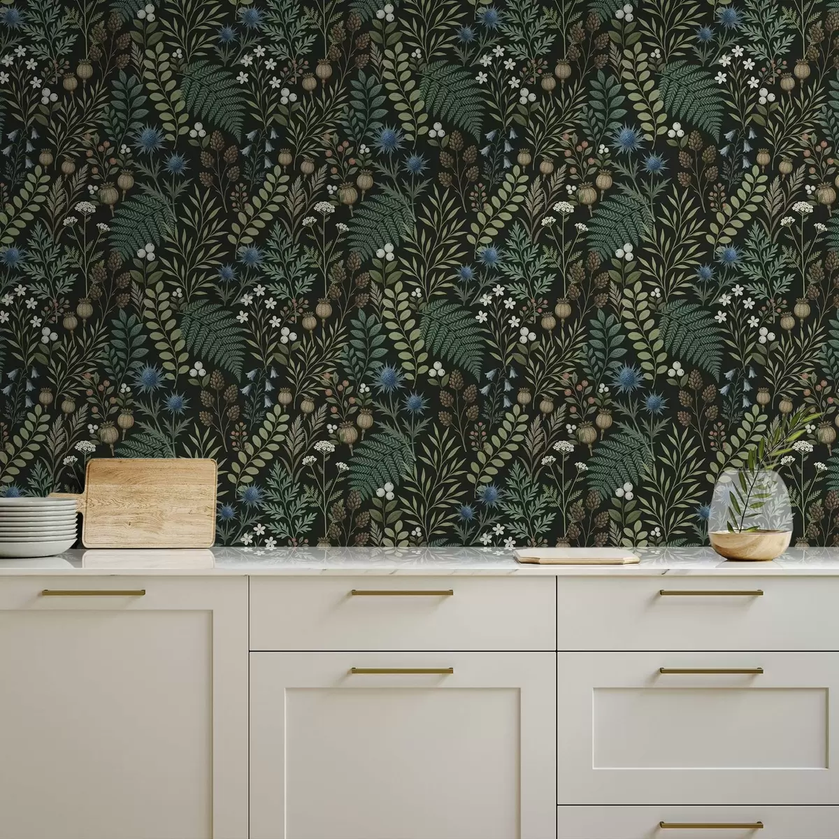Tapeta Пољске траве, бобице и семе на тамној позадини бр. a00706