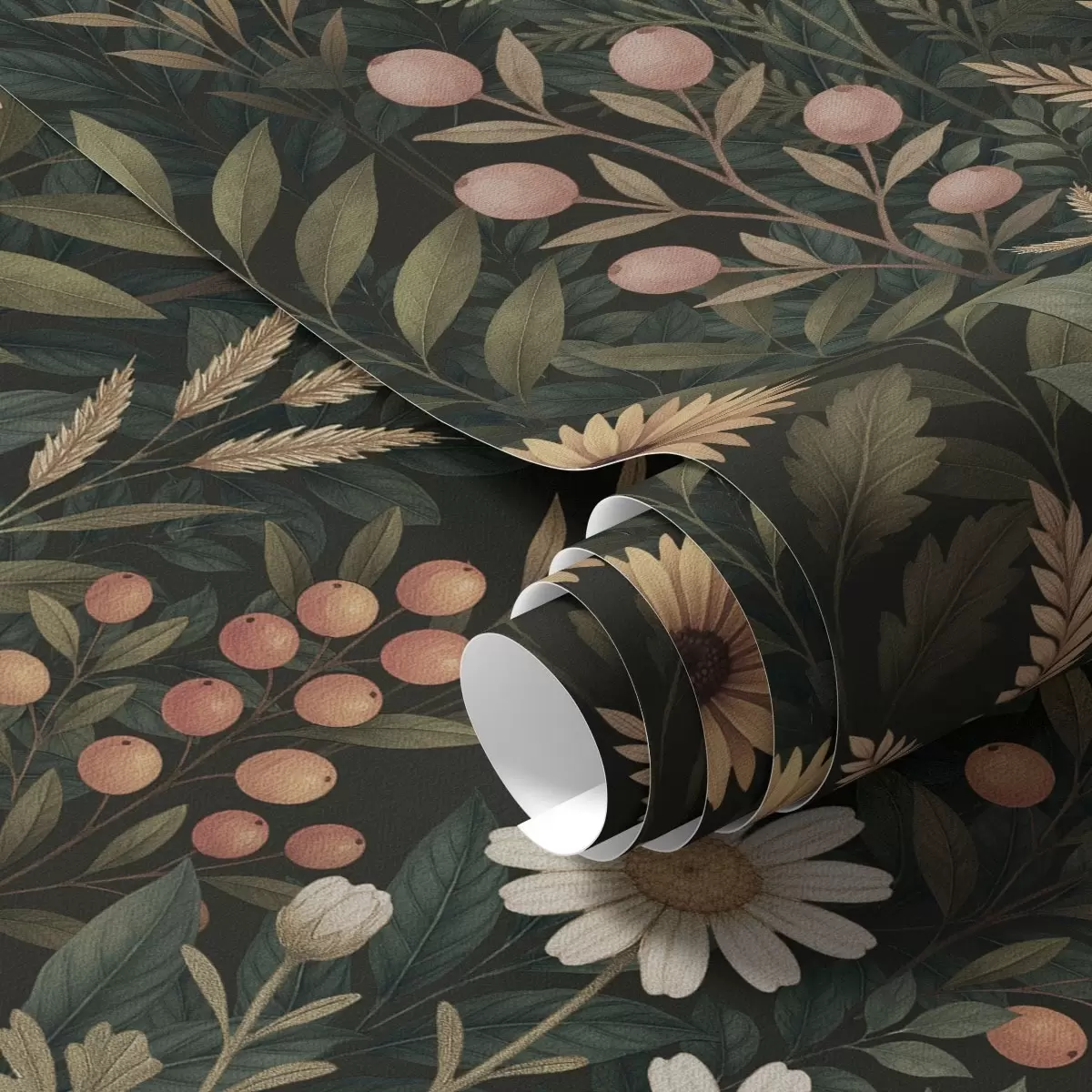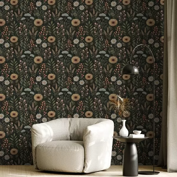 Tapeta Дивље цвеће и бобице на тамној позадини, природни украс бр. a00707