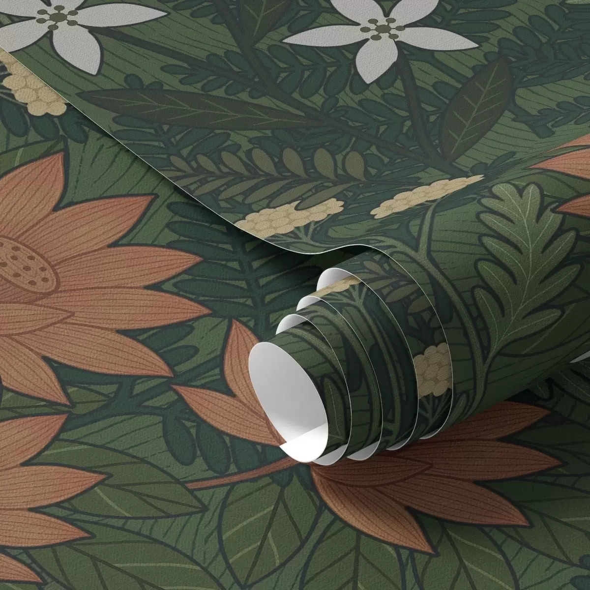 Tapeta Велико цвеће међу зеленим лишћем, декоративна композиција бр. a00708