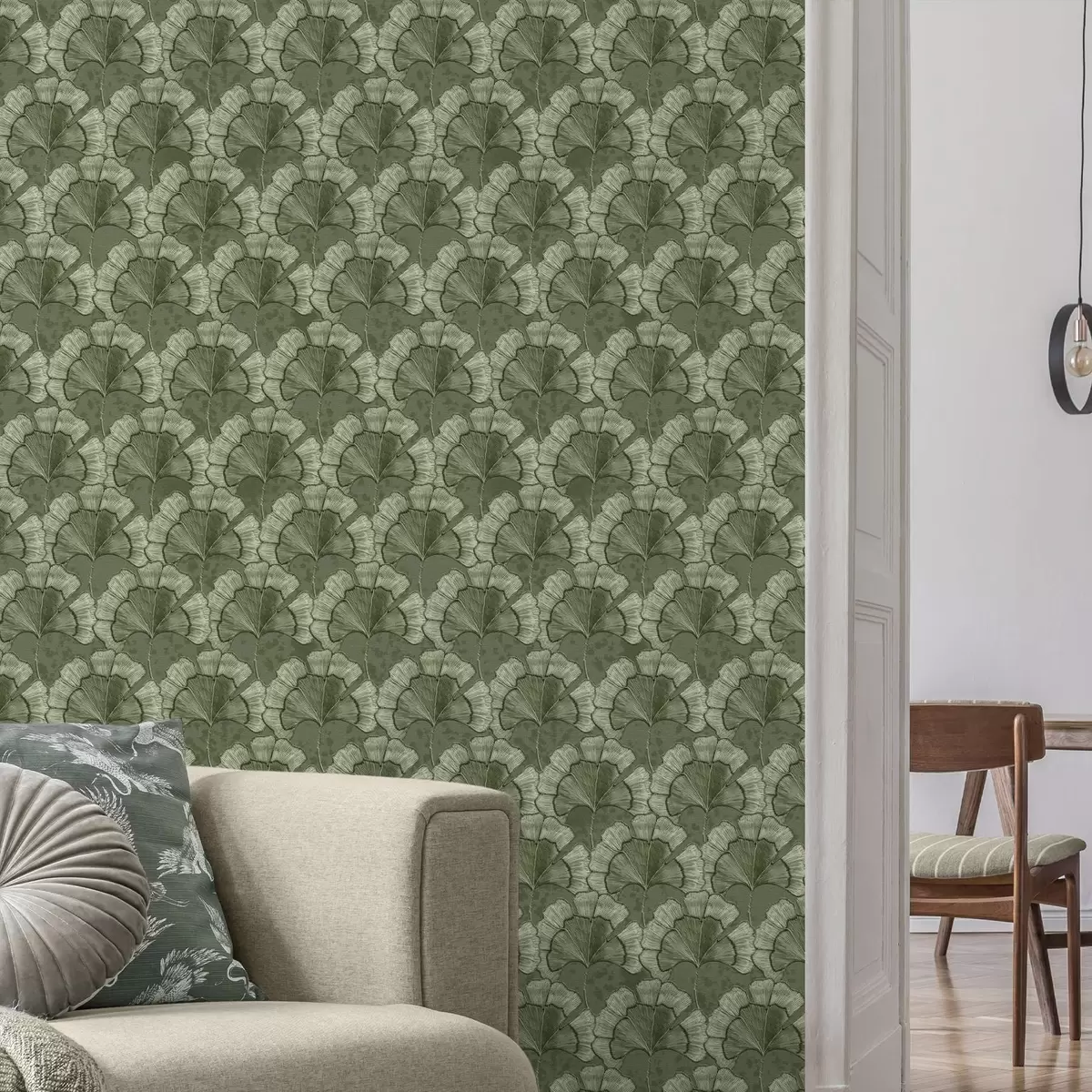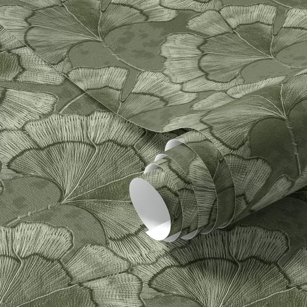 Tapeta Графички узорак са гинкгом у хладној зеленој палети бр. a00709