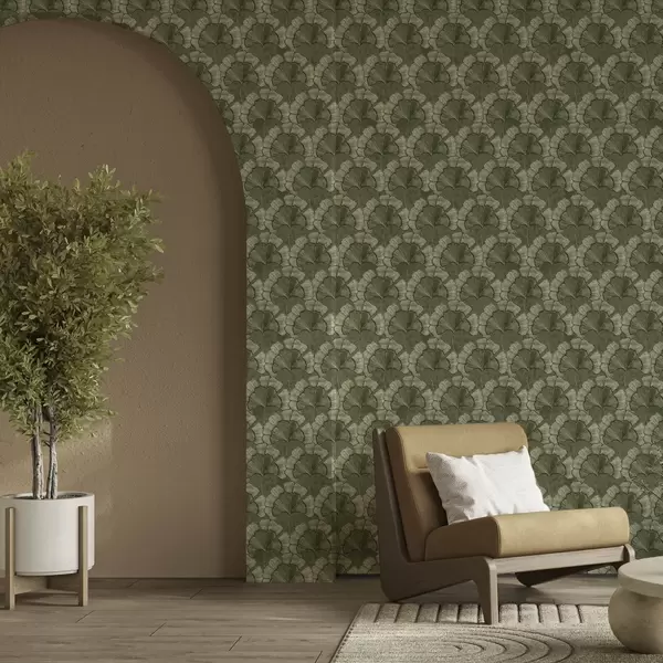 Tapeta Графички узорак са гинкгом у хладној зеленој палети бр. a00709