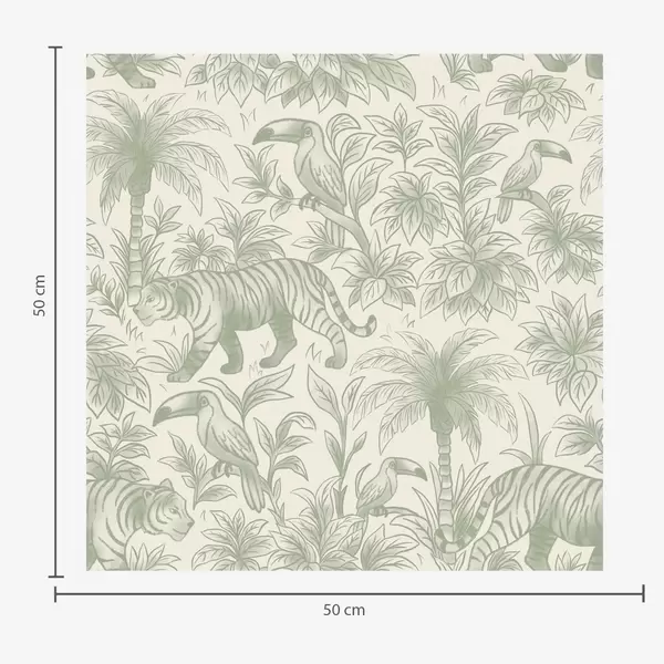 Tapeta Тигрови и тропске птице међу палмама на светлој позадини бр. a00711