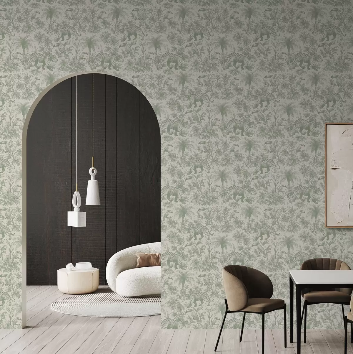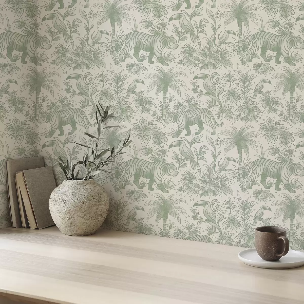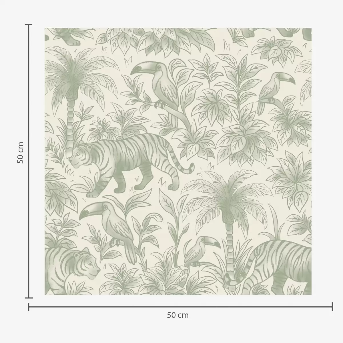 Tapeta Тигрови и тропске птице међу палмама на светлој позадини бр. a00711