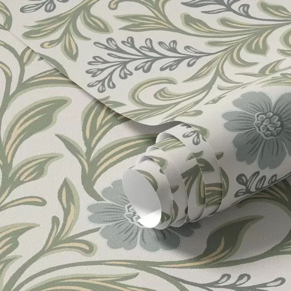 Tapeta Жалфијасто-сиви цветни орнамент на светлој позадини бр. a00712