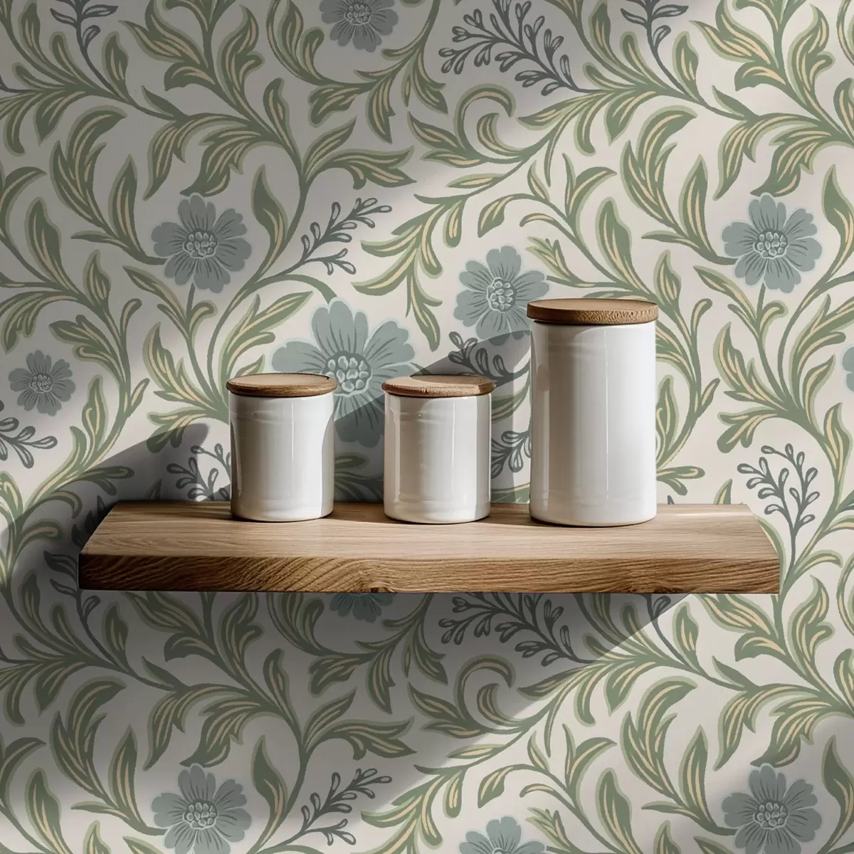Tapeta Жалфијасто-сиви цветни орнамент на светлој позадини бр. a00712