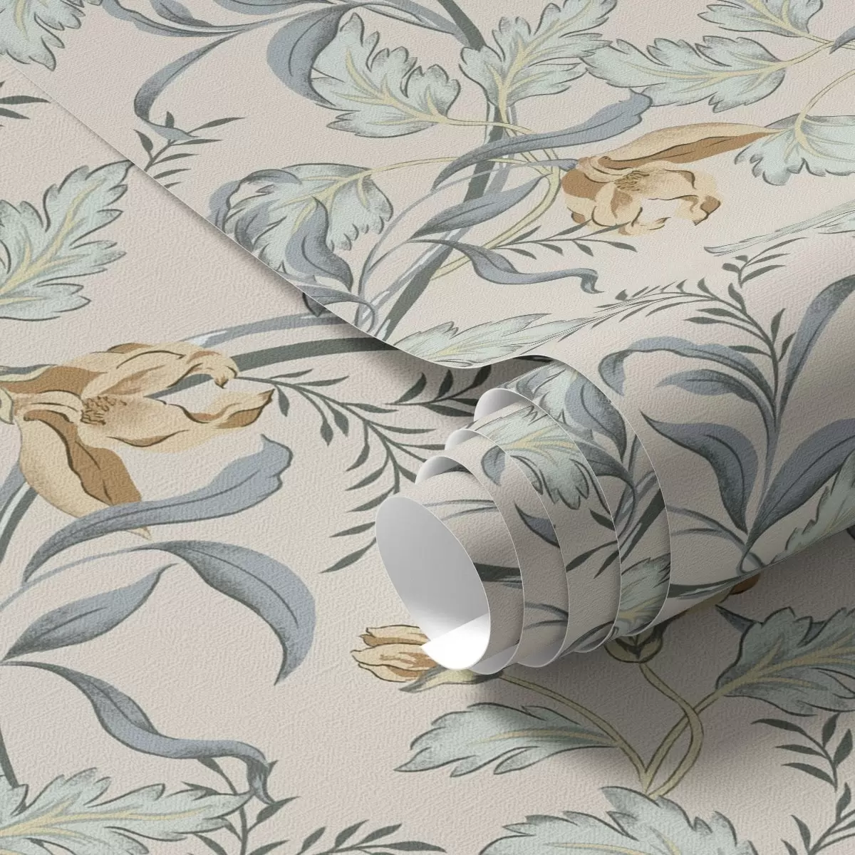 Tapeta Винтажно цвеће са плавим лишћем на кремастој позадини бр. a00717