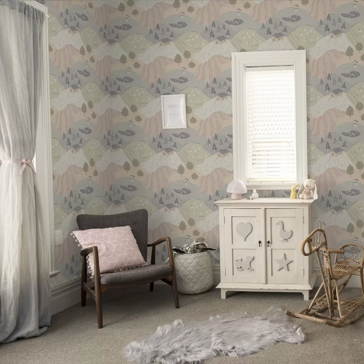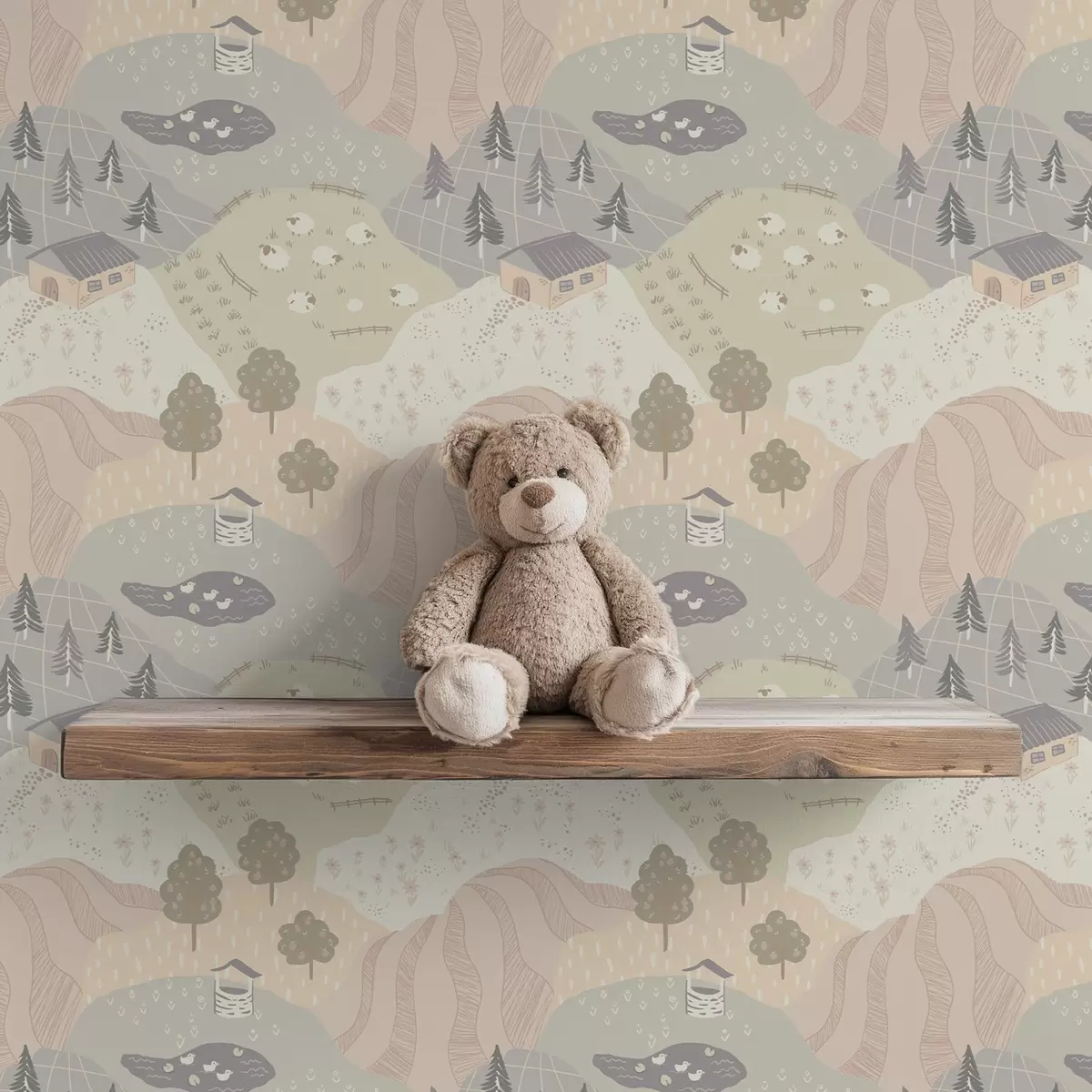 Tapeta Бајковита сеоска природа са дрвећем, гускама и овцама бр. a00728
