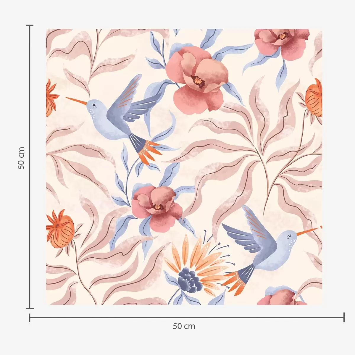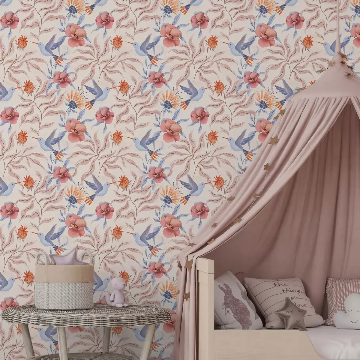 Tapeta Колибрији међу великим цвећем у ружичастим и плавим тоновима бр. a00733