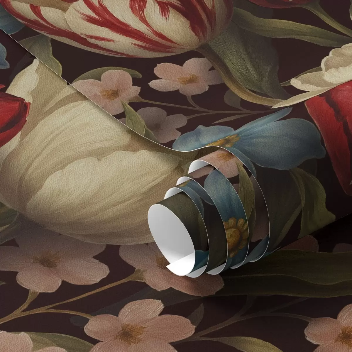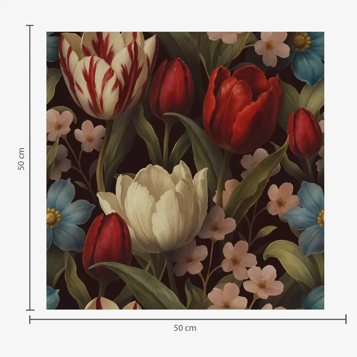 Tapeta Светли тулипани и плаво цвеће на тамној позадини бр. a00746