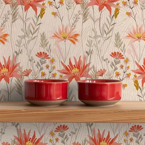 Tapeta Дивље цвеће у топлим тоновима на беж позадини бр. a00751