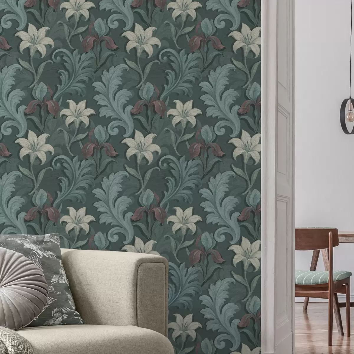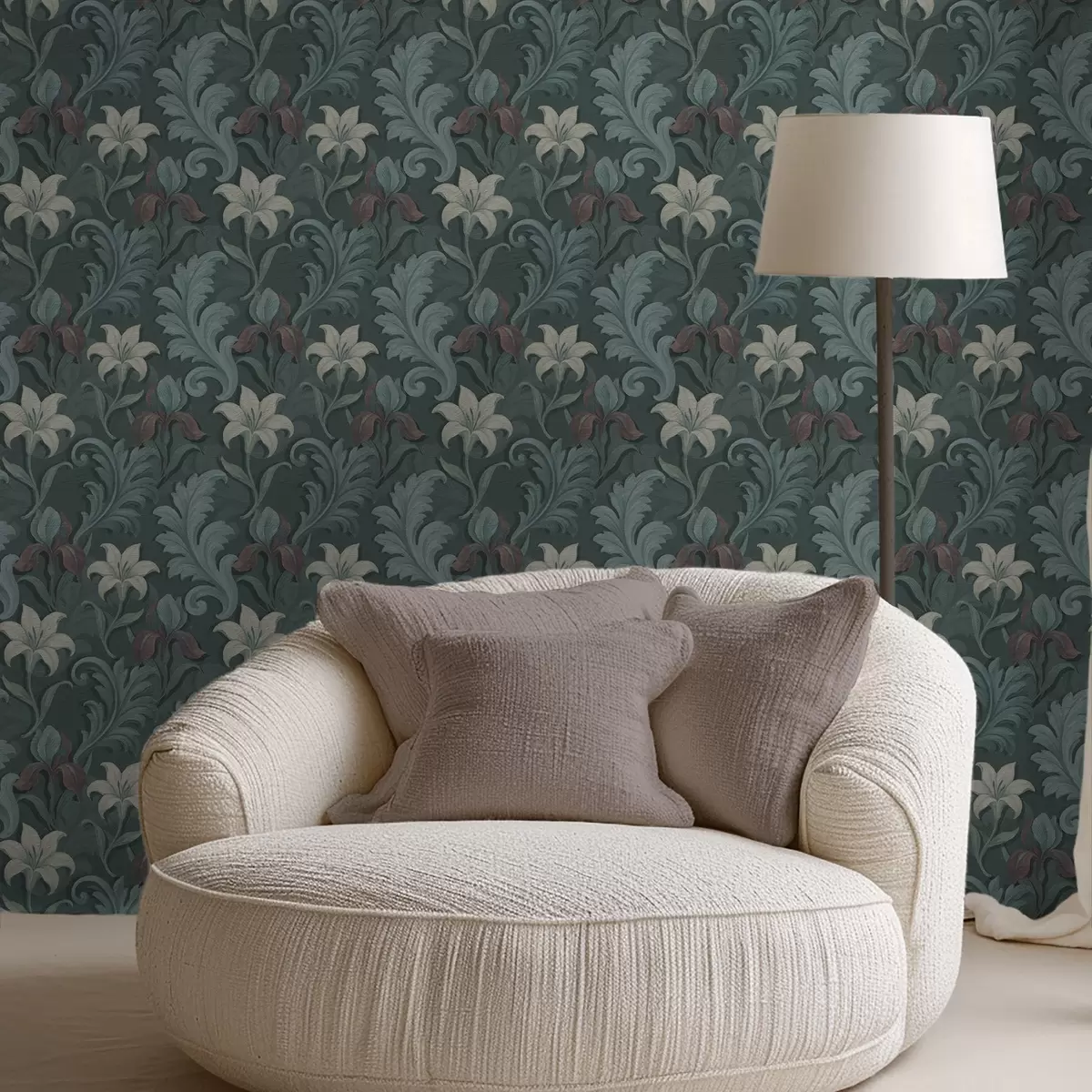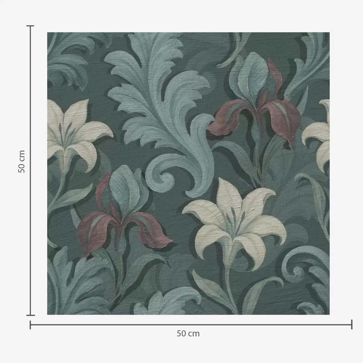 Tapeta Тамнозелена позадина са ирисима и украсним листовима бр. a00755