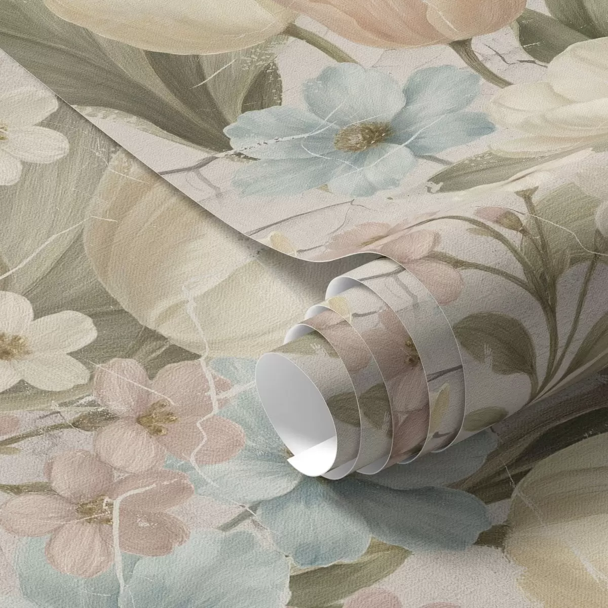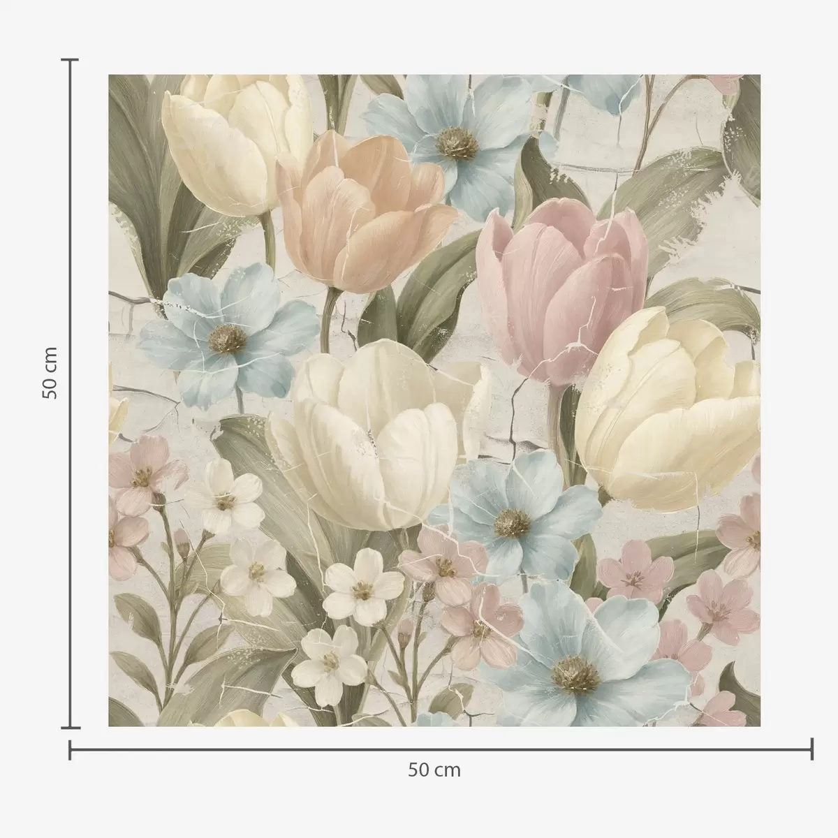 Tapeta Пастелни тулипани и цвеће на светло испуцалој позадини бр. a00756