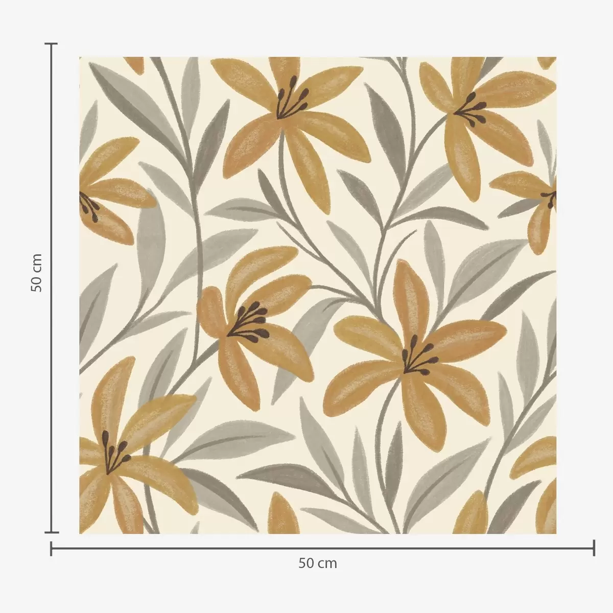 Tapeta Жути љиљани и сиво-зелено лишће на светлој позадини бр. a00757