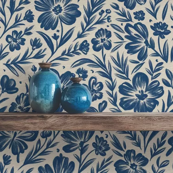 Tapeta Плави цветни орнамент са лептирима бр. a00758