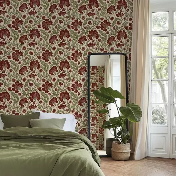 Tapeta Бордо цвеће са зеленим листовима на светлој позадини бр. a00761