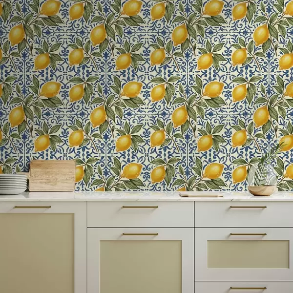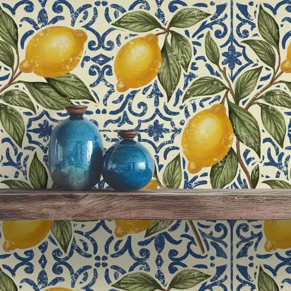 Tapeta Гране лимуна са плавом украсном позадином бр. a00763