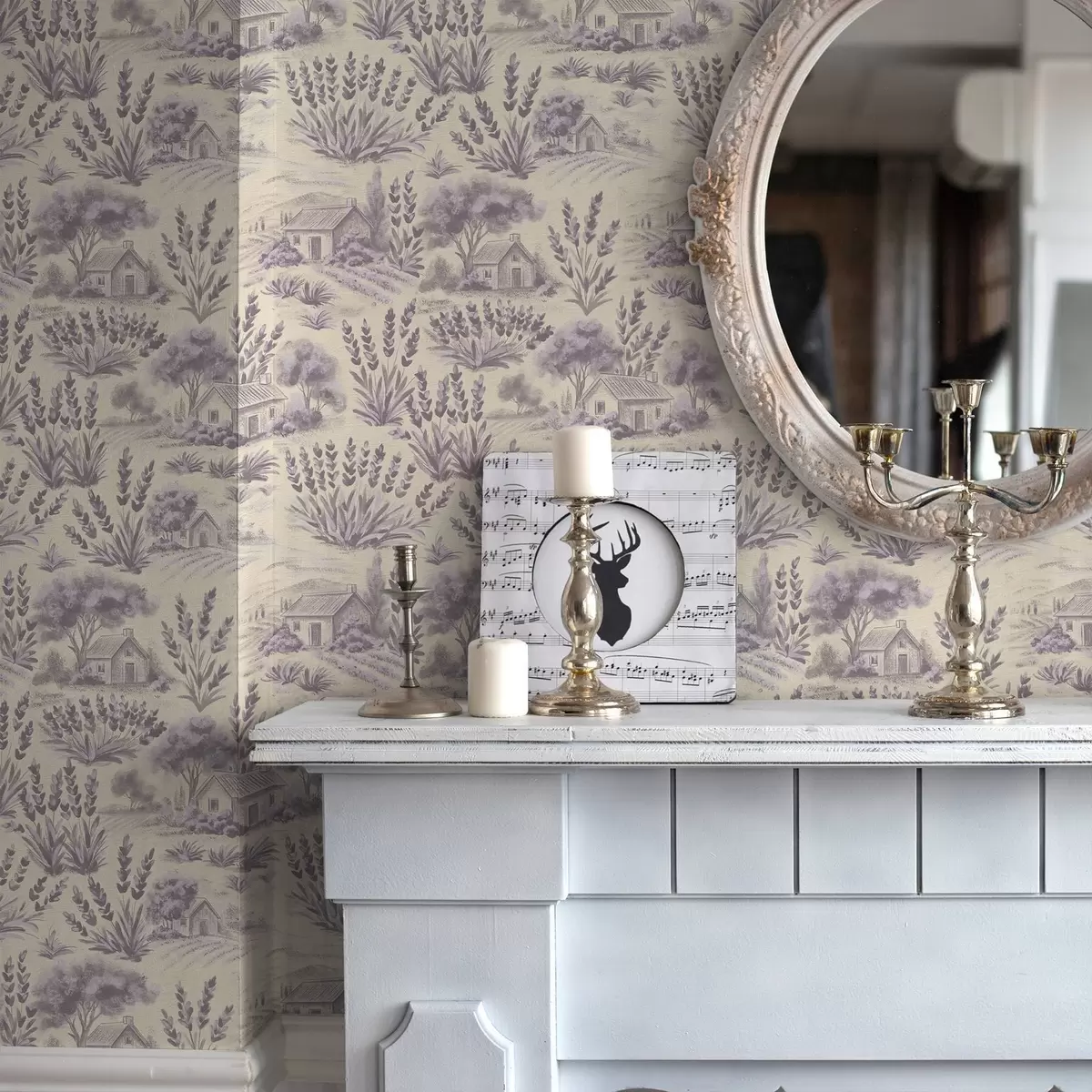 Tapeta Поља лаванде и куће у пастелним тоновима бр. a00765