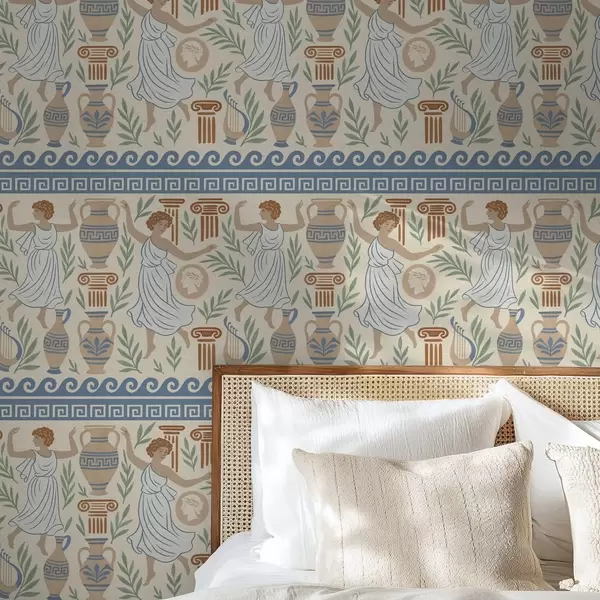 Tapeta Старогрчки орнамент са фигурама, вазама и стубовима бр. a00768