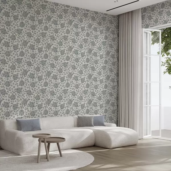 Tapeta Четкасти цветови и листови у сиво-плавој палети бр. a00778