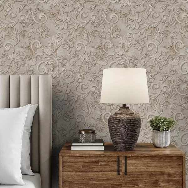 Tapeta Камени рељеф са цветним спиралама, винтаге беж бр. a00784