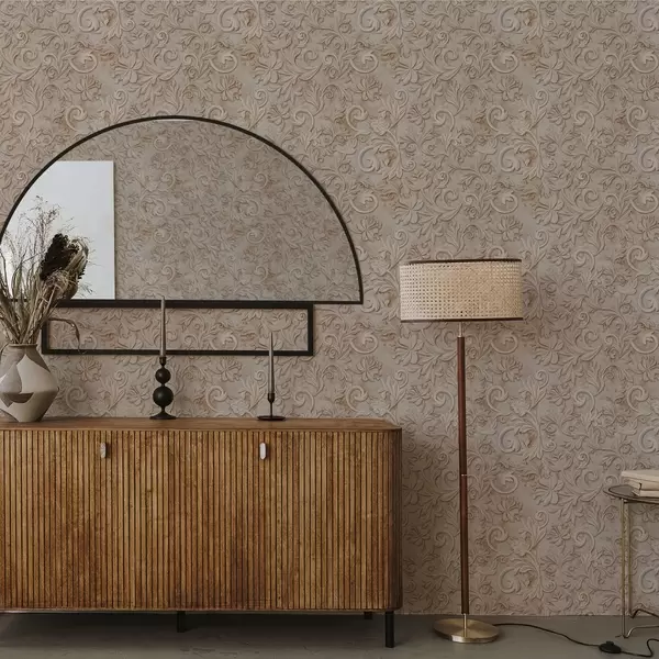 Tapeta Камени рељеф са цветним спиралама, винтаге беж бр. a00784